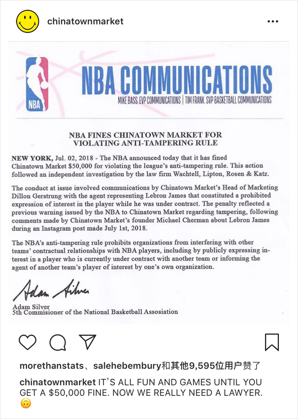 1. 恶搞成犯规?Chinatown Market 遭 NBA 罚款