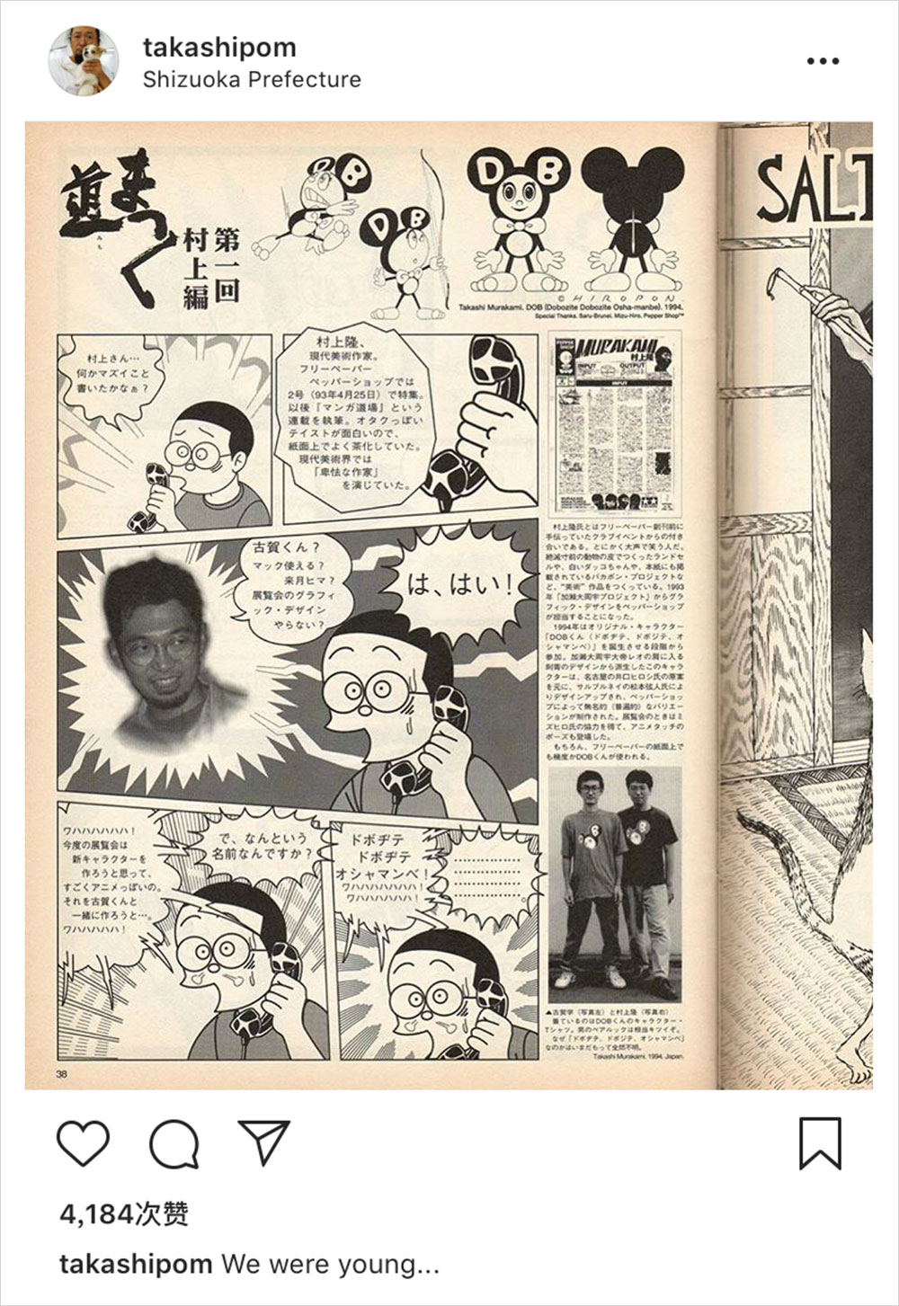 艺术家村上隆日前在 Instagram 上晒出了一张 “年轻照” ,但和普通的照片不同,这张照片是印刷在漫画当中的。据了解,该漫画是村上隆的好友,当代艺术家古賀学在 1994 年所绘,剧情讲的是当时已经颇有名气的村上隆电话邀请这名艺术家一起合作做些作品拿去展览上展出,从图片中动漫人物激动的表情就能看出古賀学当时的心情了。大家可以在右下角找到两人当年的合照,如今二十多年过去了,两人还是很要好的朋友。