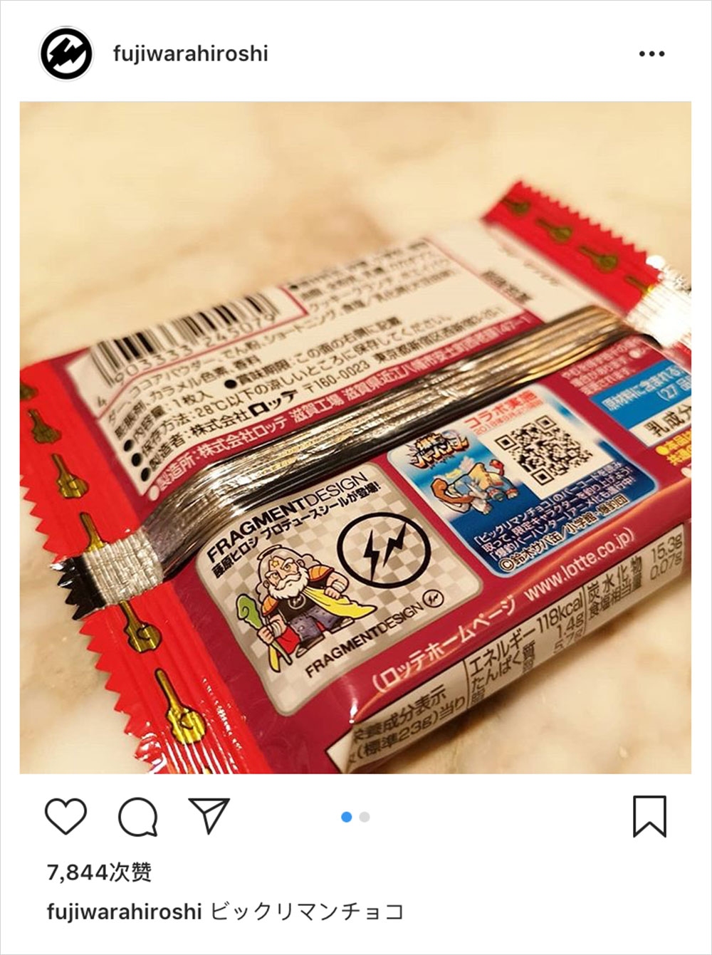 我们曾在《墙外世界》栏目中报道过藤原浩将于 8 月 9 日开启名为 “THE CONVENI” 的店铺企划,而近日藤原浩就晒出了该店铺的商品之一,“ビックリマン伝説” (仙魔大战巧克力),这是日本的经典零食,许多 80 、90 后的儿时回忆,包装里除了可以吃的巧克力外,还会随机附送一张贴纸,一共有 46 款贴纸,其中的特别版就是与藤原浩的 fragment design 联名设计的。这款零食将在 7 月 17 日发售,价格是 80 日元,想收藏贴纸的朋友千万别错过啦。