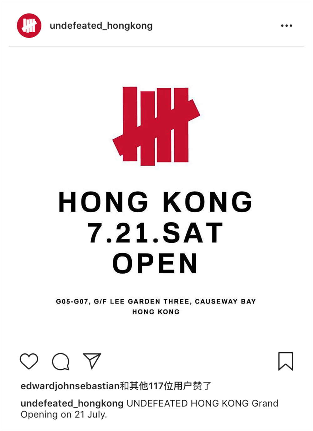 在上个月于日本涉谷开设首间旗舰店之后,UNDEFEATED 从美国进军亚洲市场的动作接踵而至,在 Instagram 上公开宣布决定在本月 21 日于香港开设首间实体门店!一个月的时间就在亚洲开了两家实体店,这对身处亚洲的 UNDEFEATED 粉丝们来说绝对算得上喜讯了,只是不知道香港的门店设计会不会和涉谷的一样具有标志性,成为一个 “潮” 圣景点呢?
