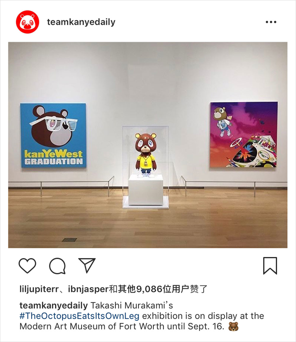4. 你将会在村上隆的展览中看到 Kanye 的辍学熊