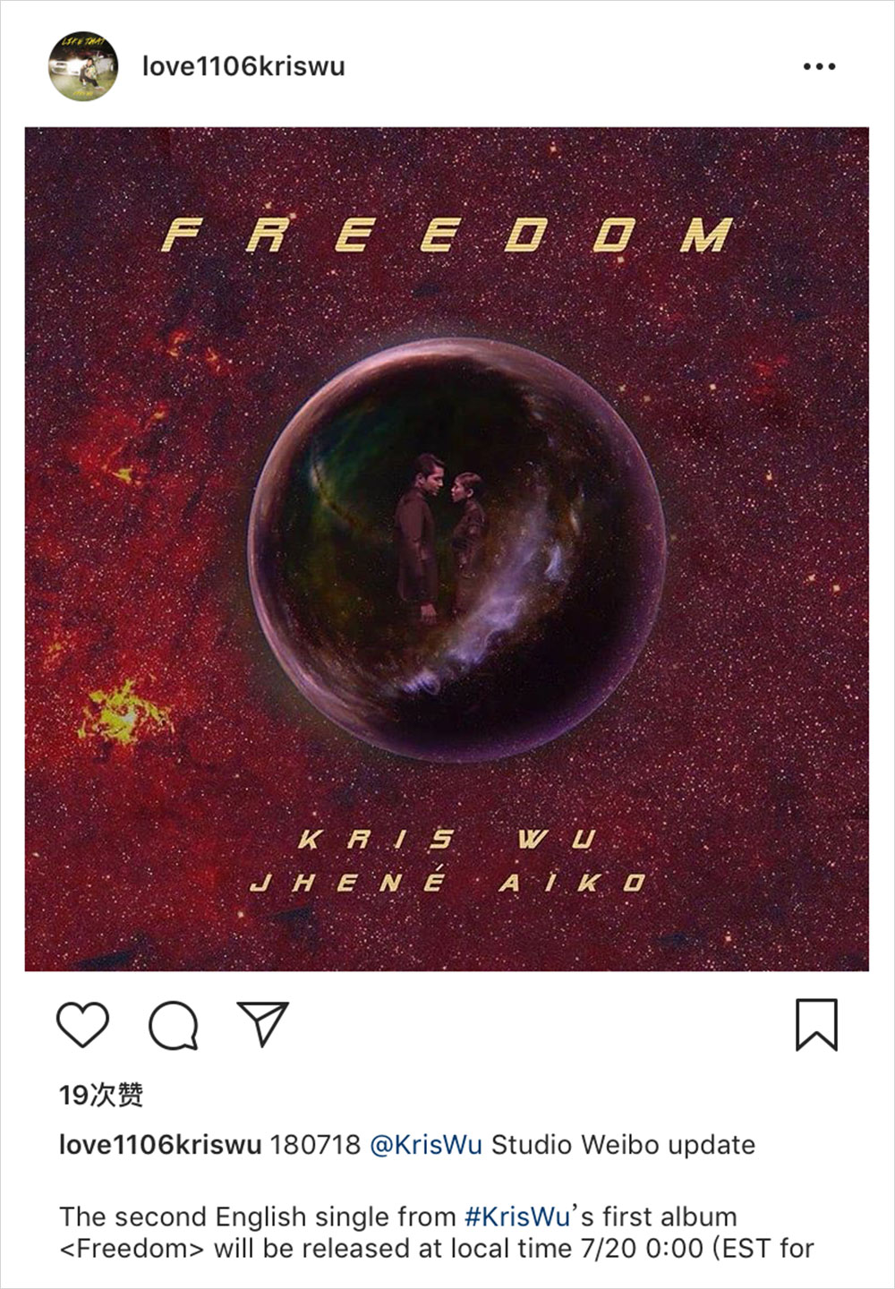 4. 吴亦凡新单《Freedom》将于本月 20 日在全球上线