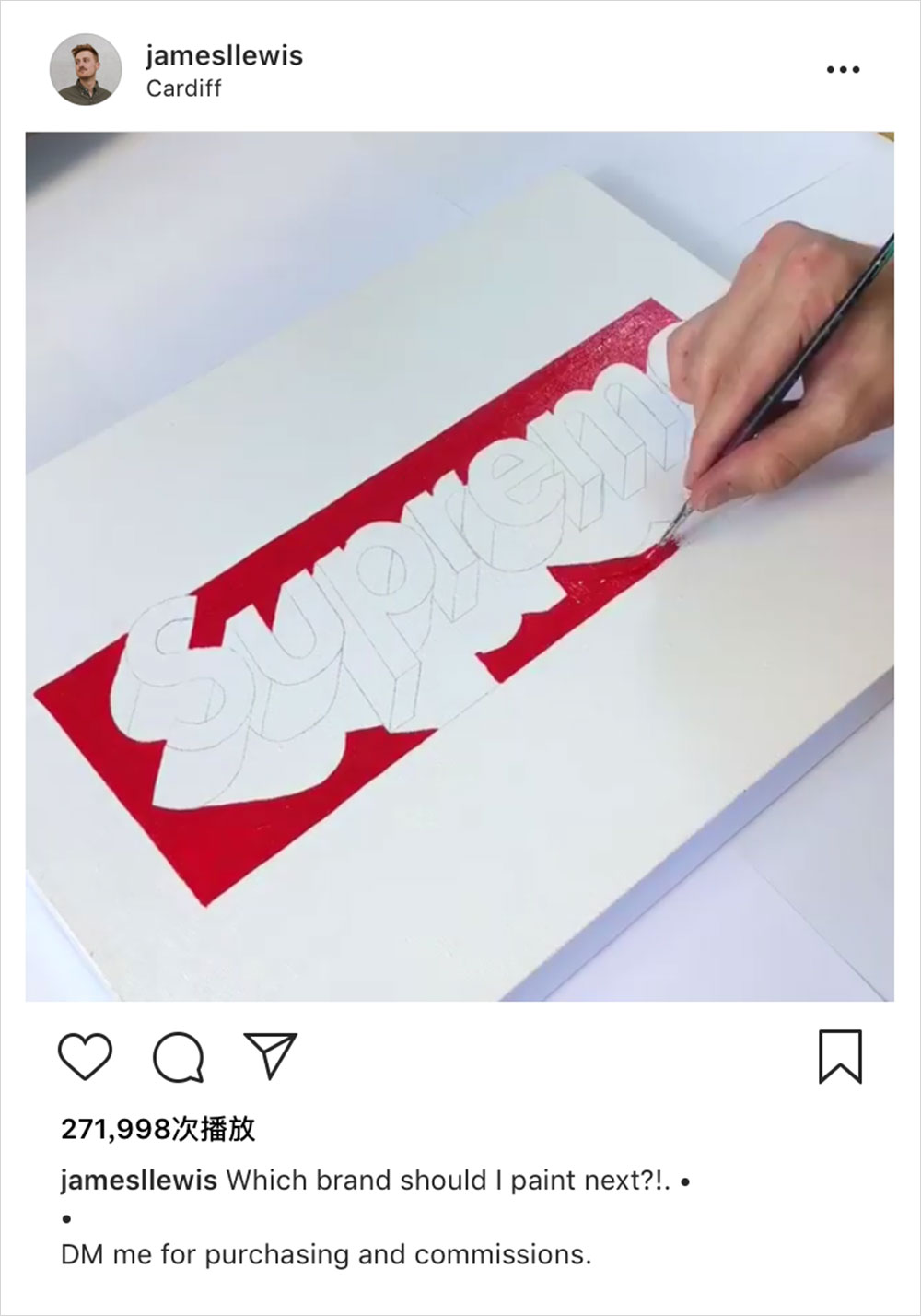 刻字艺术家 James Lewis 有超过 6 年的手绘刻字经验,并且喜欢将自己擅长的平面设计技巧融入其中,从而将一些大家生活中常见的品牌 Logo “立体化” 。比如 Supreme 、Levi’s 、IKEA 等,因为经常会将这些手绘过程分享于网路,这致使他在社交媒体上得到不少粉丝的关注,是否真的出色,大家点击视频看看就知道了。