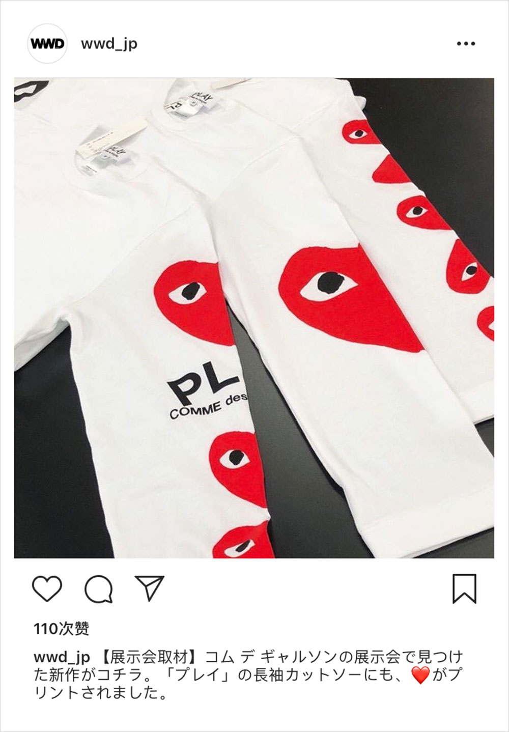 时尚杂志 @wwd_ jp 日前晒出了 COMME des GARÇON 展会上的新作品,就是品牌支线 PLAY 的标志性 Logo 加持的一款长袖 Tee 。虽然大家对这个 “爱心眼” 可以说是很熟悉了,但这次川久保玲将图案移到了袖子上,这样的新 ”玩法“ 释出了三款,怎么样,有吸引到你吗?