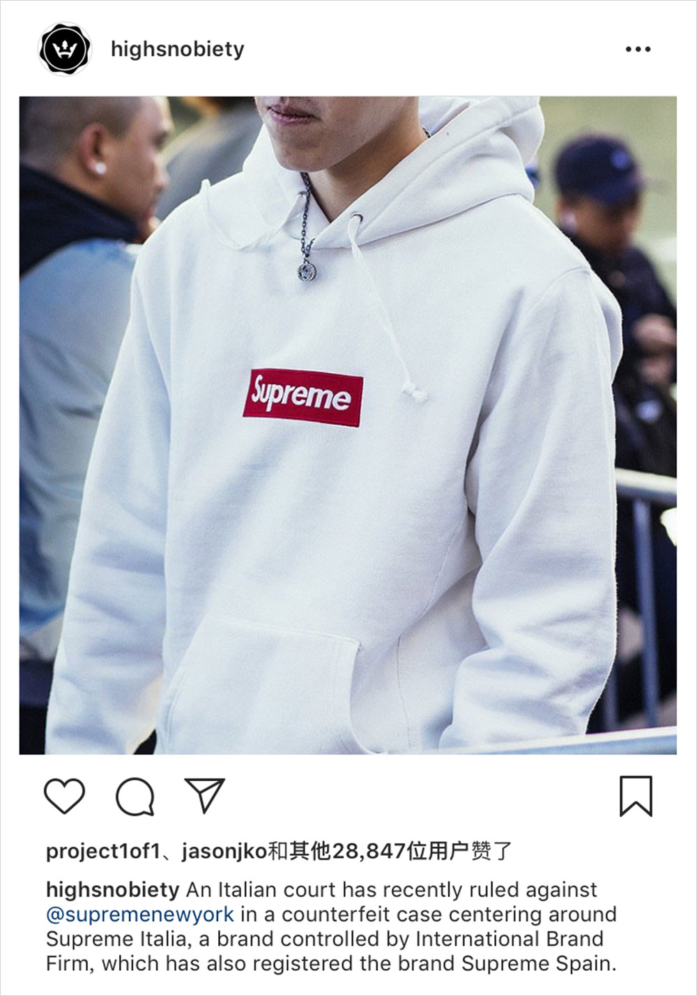 近日意大利一家法院在 Supreme 与贩售假冒 Supreme 的单位 “Supreme Italia” 和 IBF (假 Supreme 的幕后商)的侵权案件中竟 “站边” 后两者,理由是这些仿冒品牌在当地属于合法注册商标,并在巴塞罗那和伊维萨开设了实体店(说白了就是抢先注册了商标),此外法院还归还了早前警方扣押的用于西班牙市场的 3000 多件 Supreme 假冒产品。谁也没想到,一向 “至高无上” 的 Supreme 竟然在侵权问题上败诉了,虽然其他指控(非公平竞争)的判决还未定,但情况似乎不容乐观啊…… 你们又怎么看呢?
