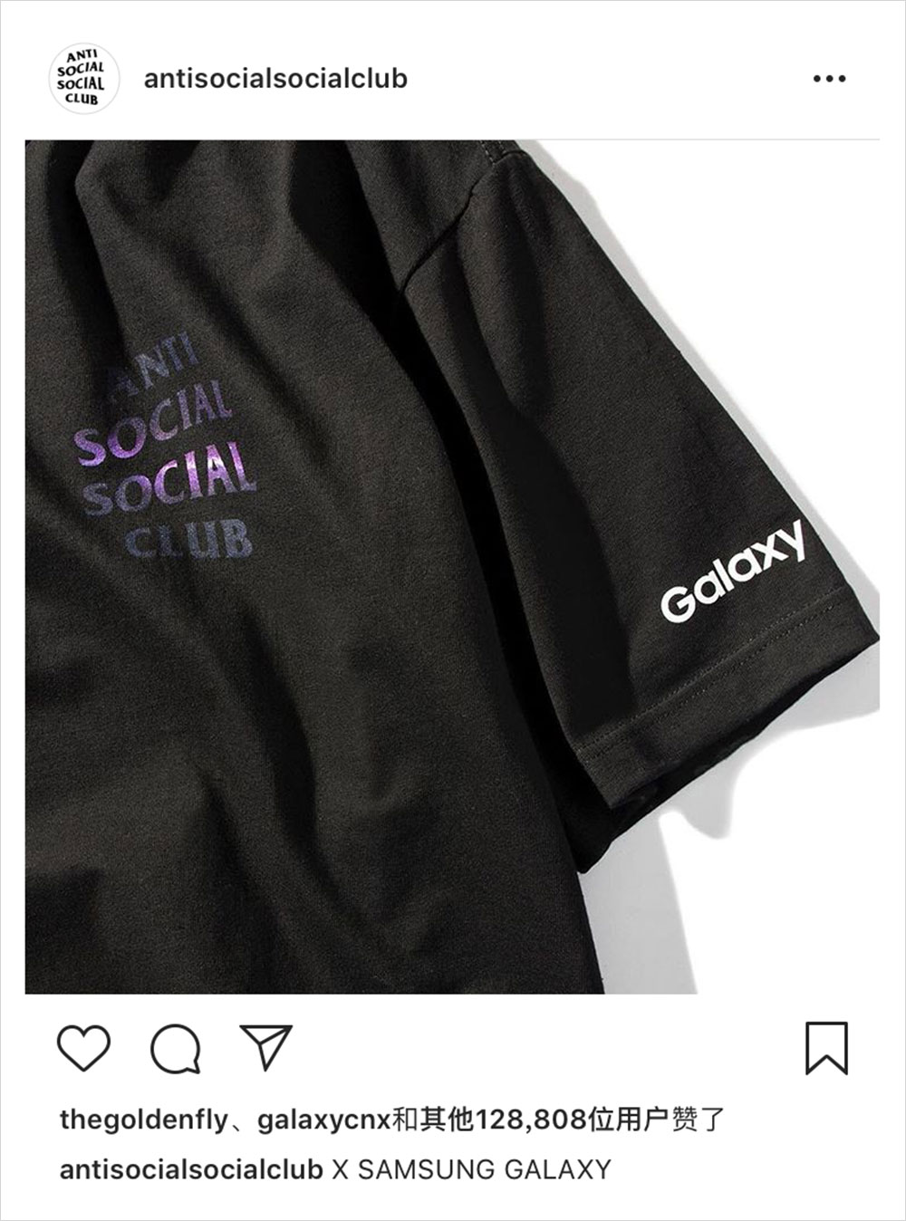 继 “防爆盾” 和 “防暴头盔” 之后,Anti Social Social Club 在联名上也玩起了 “跨界” 。继昨日三星发布 Galaxy Note 9 之后,破天荒的与街头品牌 Anti Social Social Club 展开了联名,大家可以在衣服胸口看到带有星空渐层效果的熟悉的字体 Logo ,袖子上有明显的 “GALAXY” 注释,想必你也好奇,双方还会释出哪些有趣的联名单品吧?