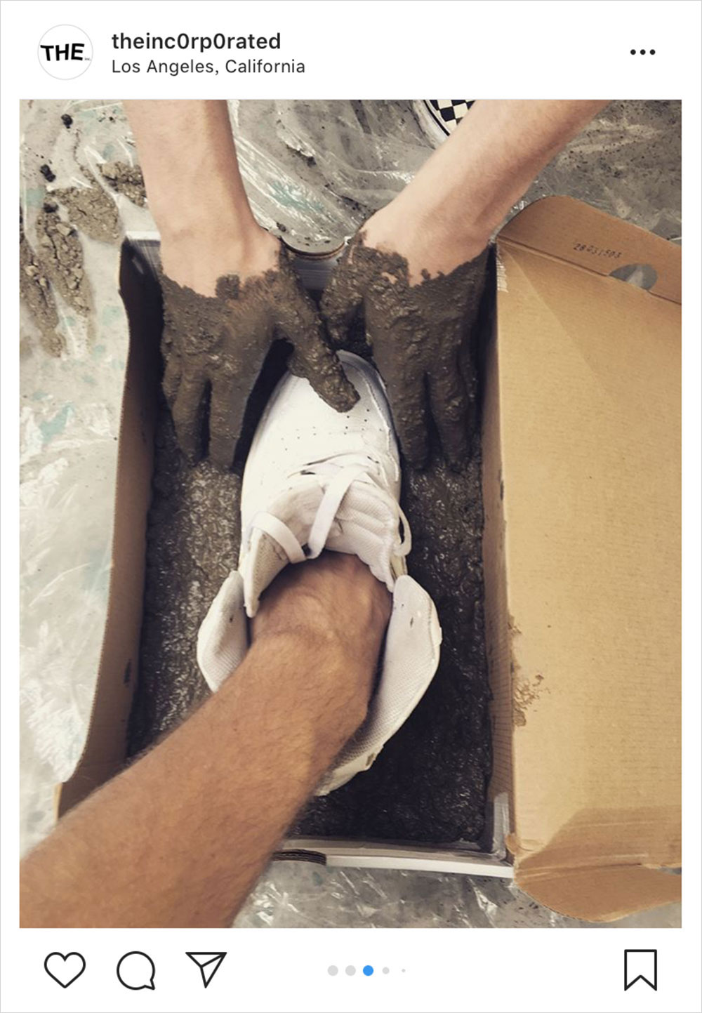 随着 Sneaker 文化的普及,网上总能出现不少运动鞋的新奇 “玩法” ,洛杉矶品牌 The Incorporated 日前就向你展示了如何做出一个可收藏也可装饰的鞋款 “艺术品” 。就像你看到的,先往鞋盒里灌上适量水泥,之后将一双高帮的 Air Force 1 置入其中等候干燥就可以了,虽然粗暴,但对于狂热的 Sneakerhead 来说应该会是家里不错的装饰品吧?