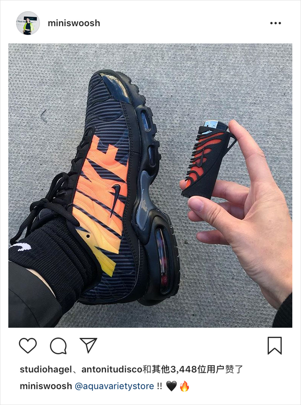 喜欢将 Nike 的产品重新解构塑造成新形态的设计师 MiniSwoosh™ 日前晒出了自己的新作品,不过不是服饰鞋款一类,就像你看到的,只是一个打火机,同时也将设计来源对比了出来 —— Air Max Plus ,火机则借鉴了鞋款的结构设计,你们喜欢么?