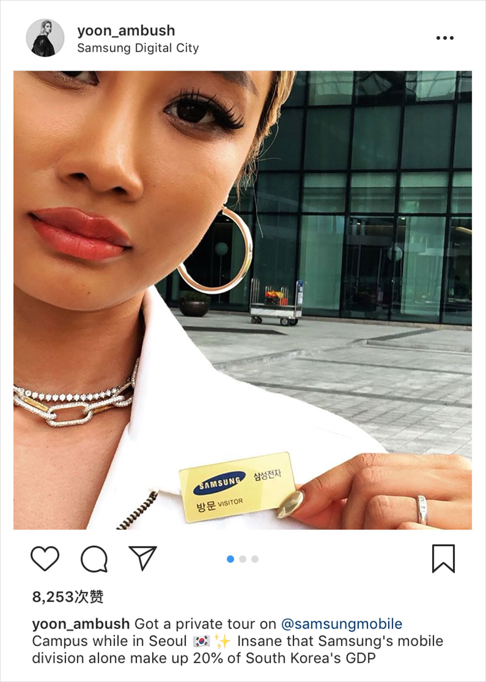 就像你看到的,AMBUSH® 设计师 Yoon Ahn 日前回了一趟韩国老家,到三星集团走了一遭,这不免让人怀疑,在三星前段时间与 Anti Social Social Club 展开联名之后,难不成也会和 AMBUSH® 有什么新动作吗?可惜附文也表示了,Yoon Ahn 只是受邀来参观,要知道三星除了电子产业外,也是有涉及服装产业的,所以以后的事情,可能也说不定呢?