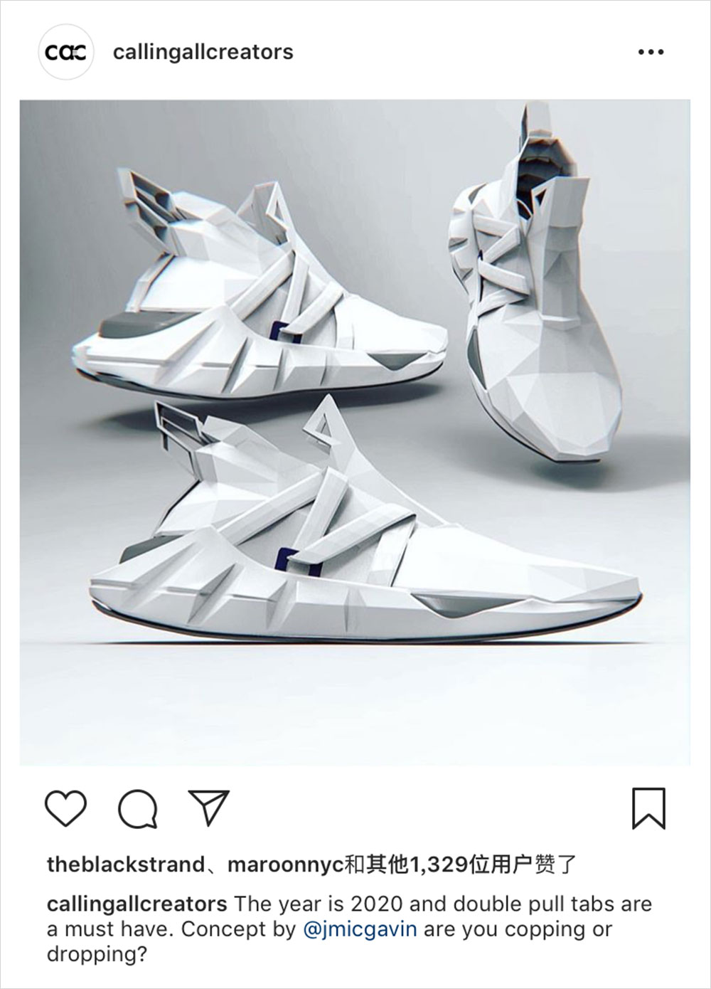 早在去年 adidas 发布了一场名为 Calling All Creators 的营销战略,是一个呼吁全球的创意者们对球鞋进行创意设计的鞋类设计机构。而该机构近日也陆续在 Instagram 上晒出了一些作品的概念图,像图中由 @jmicgavin 设计的这一款目前就较受欢迎,虽然图片看不出配色,但不难从鞋型上看出满满的科技感,你们喜欢这样的设计吗?