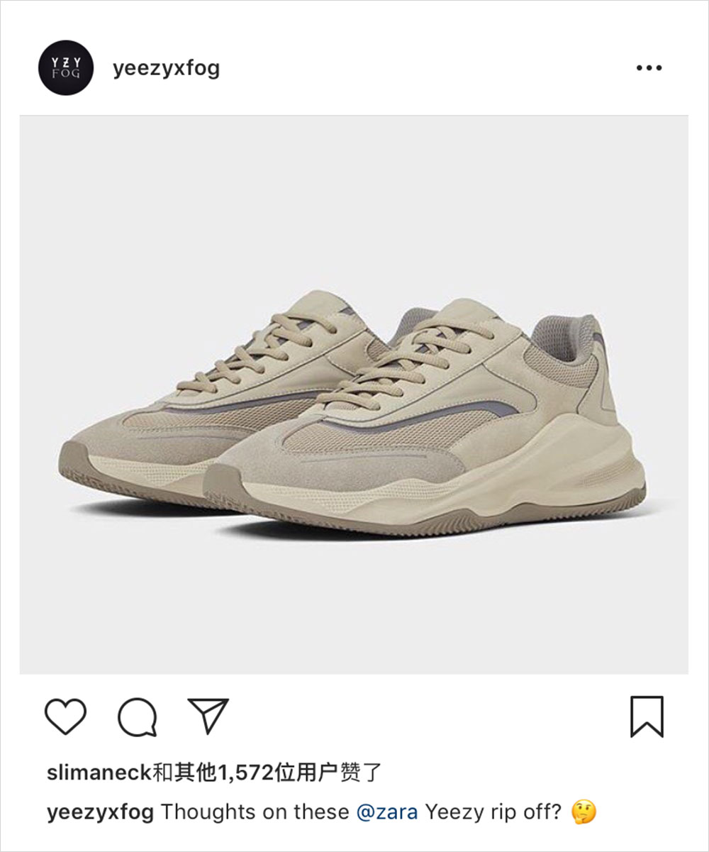 相信大家对于 Zara 的 “抄袭” 应该都略有耳闻了吧,品牌也曾因为抄袭问题产生过不少法律纠纷。而近日,Zara 推出的鞋款就被指明显抄袭 Kanye 的 Yeezy Wave Runner 700 ,可以看到,鞋款虽然是卡其色的设计,但给人的第一感觉确实就是 Yeezy 700… 你们也这么觉得吧?