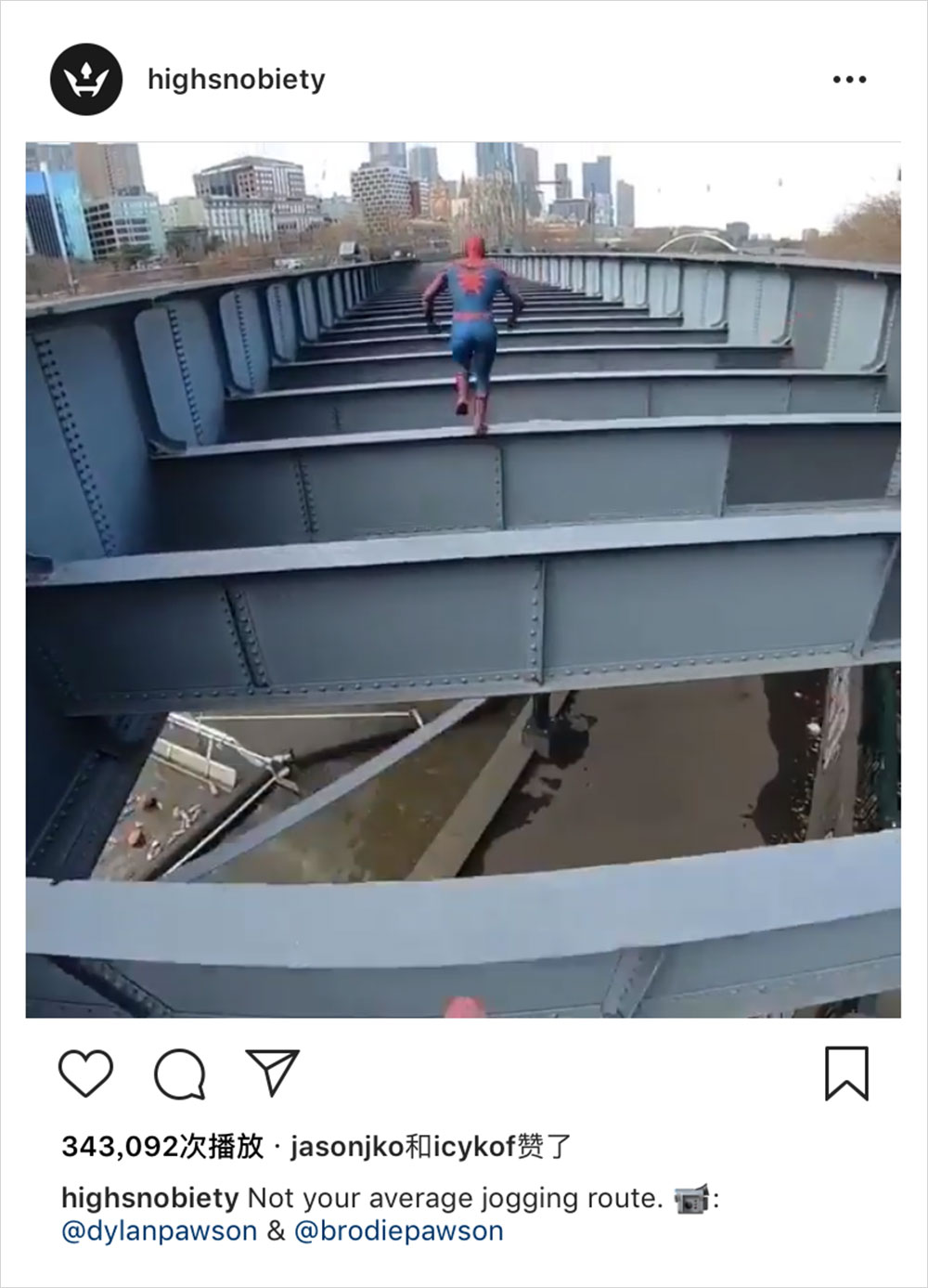 在漫威众多的超级英雄中,蜘蛛侠可以说是人气非常高的英雄角色,经常会出现粉丝穿上蜘蛛侠战衣模仿的情况。但图片中的两位粉丝显然单是靠 “穿” 已经不能满足自己的英雄心了,就像你看到的,两人穿着蜘蛛侠战衣跑到了非常高的建筑物上玩起了 “跳跃挑战” ,似乎是要还原电影中蜘蛛侠飞檐走壁的英姿… 在此还是建议喜欢蜘蛛侠的粉丝们,要理性 “模仿” ,注意安全最重要…