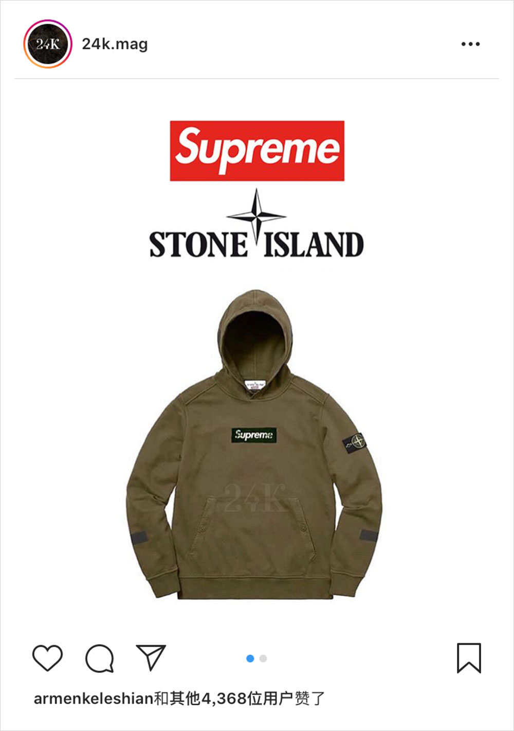 除了 THE NORTH FACE 以外,意大利机能品牌 Stone Island 和 Supreme 也算是一对好 “基友” 了,经常会在秋冬季展开联名。账号 @24k.mag 日前就宣称,Supreme x Stone Island 新的联名系列已经在筹划中了,会在今年秋季准时发布。如果消息是真实的,那帖子的第二张图也很有趣地调侃了大家目前的状况,那就是你的钱包还有钱吗?
