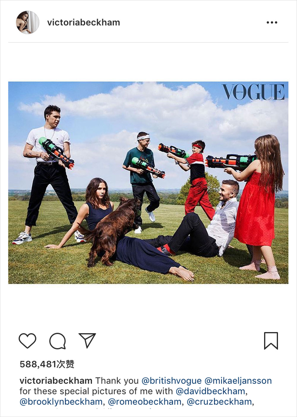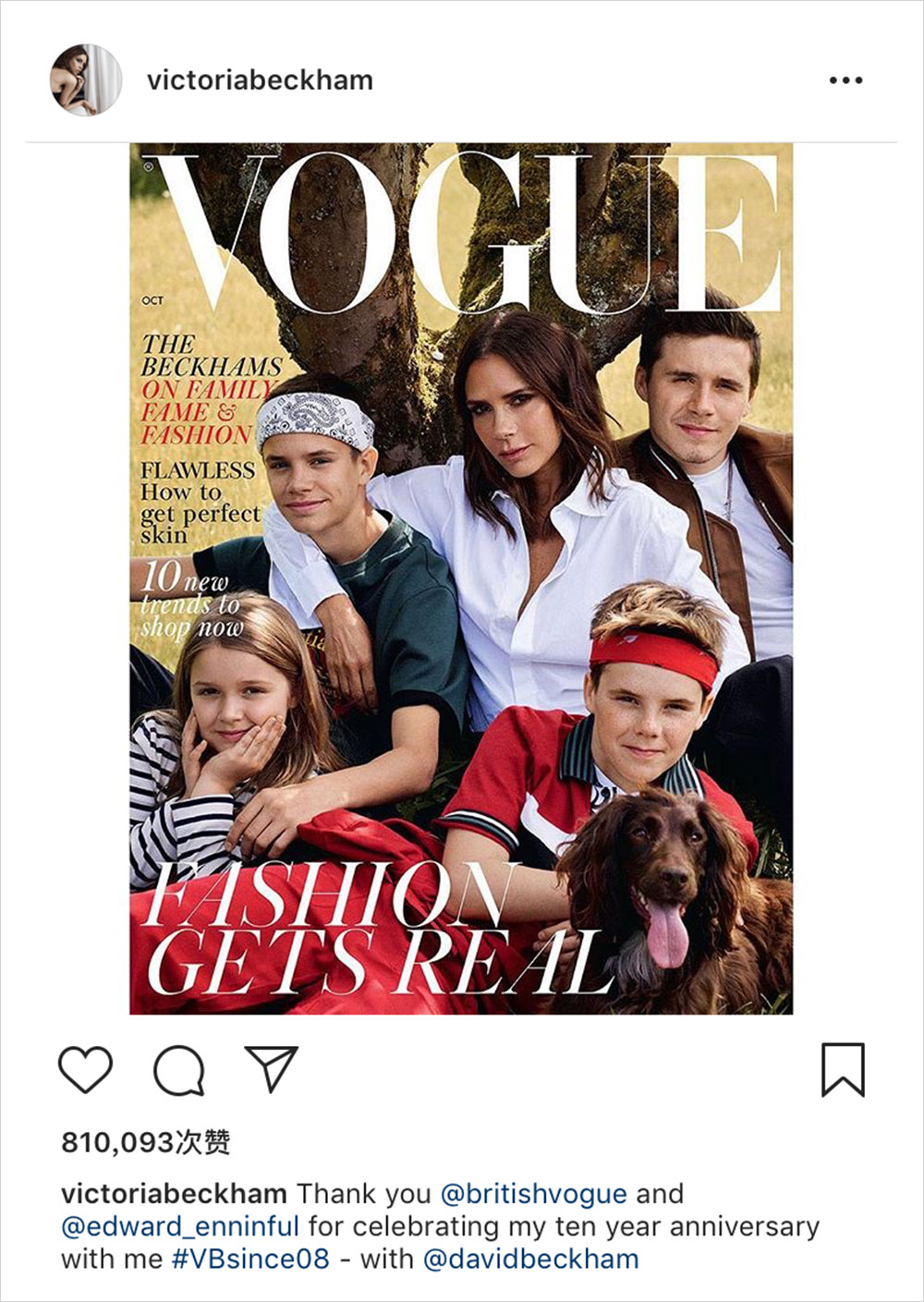 为庆祝同名品牌十周年纪念,Victoria Beckham 近日携丈夫 David Beckham 以及四个孩子登上时尚杂志《VOGUE》十月号刊面。对于品牌十周年庆,David Beckham 在杂志中表示非常自豪,认为品牌的成功要归功于妻子 Victoria 这十年的不断努力,同时还能顾及家庭。虽然之前 David Beckham 一直被谣言困扰着,但杂志上一家温馨的画面想必能打破这一状况。