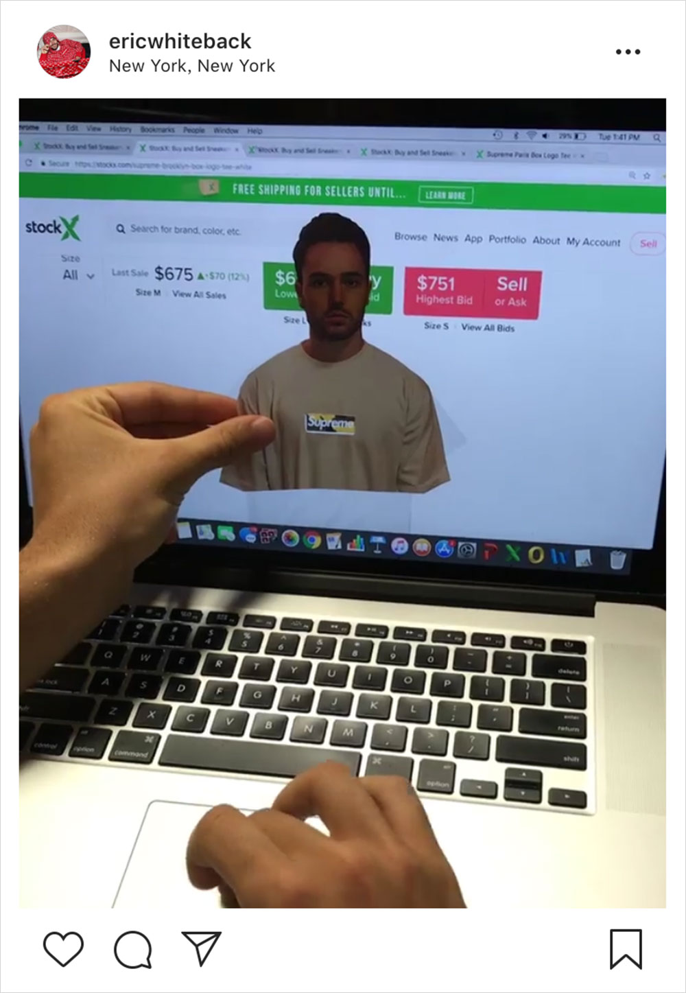继 Supreme ”乒乓球“ 游戏和扮演 ”送报“ 的小行家后,Supreme 玩家 @ericwhitebac 日前又给大家展示了一波 Supreme 的新玩法。但这一次 Eric Whiteback 晒出的视频更具有趣味性,因为是教大家如何在线试穿 Supreme 的 Box Logo ,就像你看到的,只需要准备一张你身着白 Tee 的正面照,然后在胸口处剪掉和 Box Logo 差不多比例的正方形大小,在打开电商的 Box Logo 产品时,只要比对就好了…