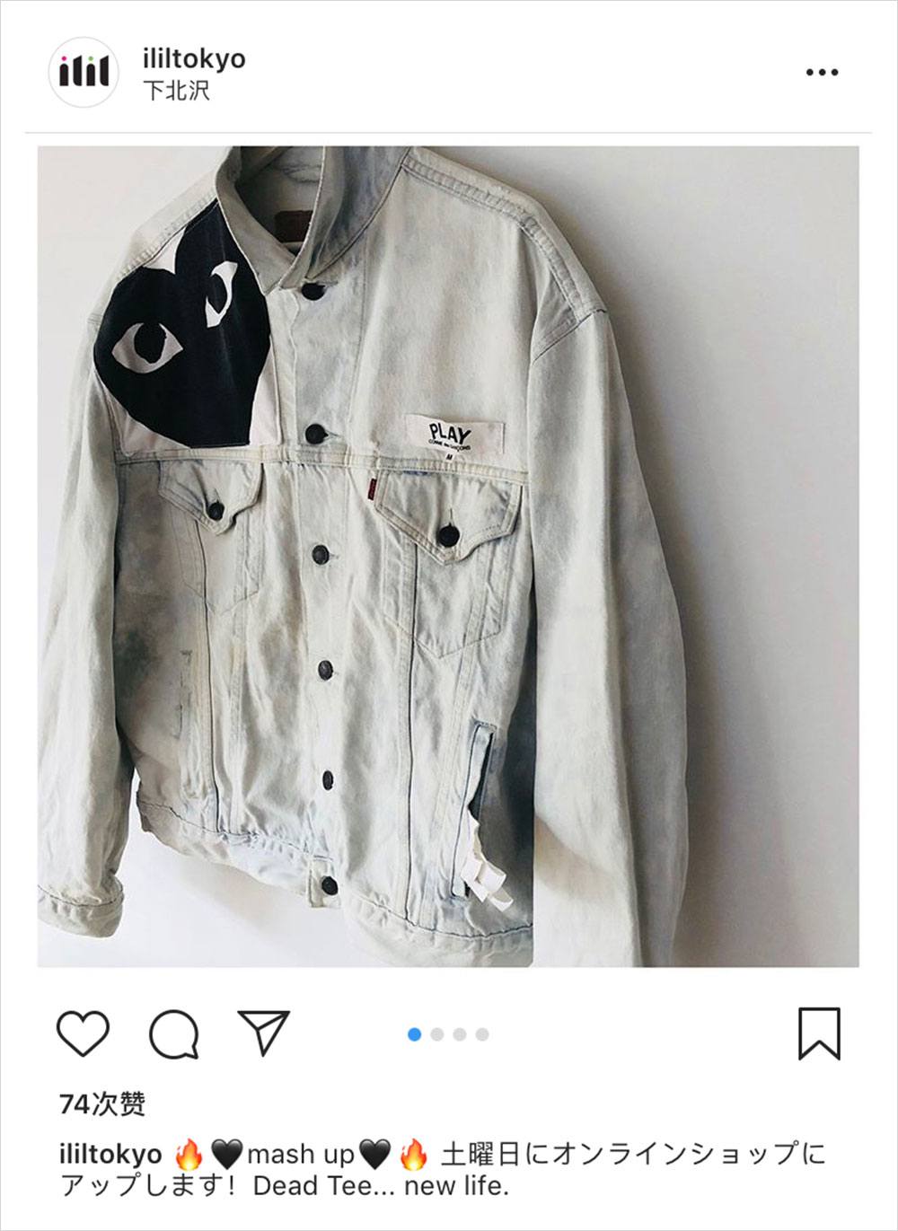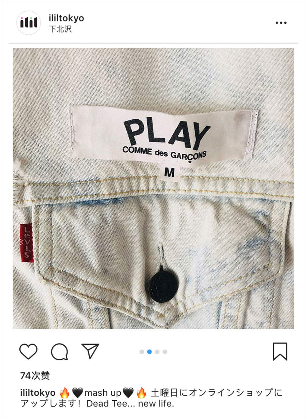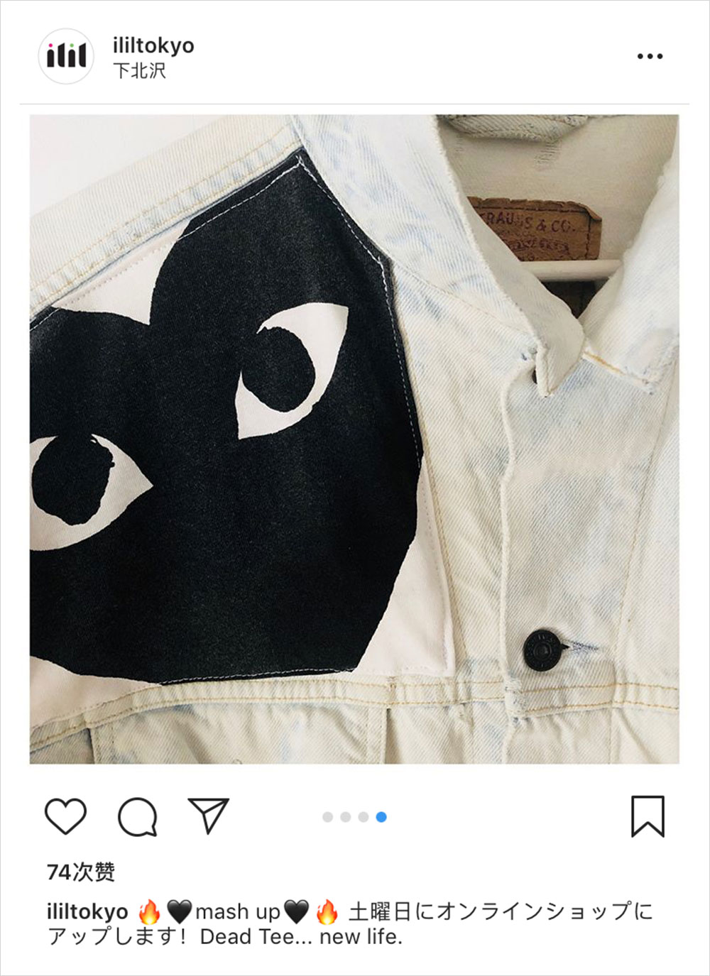 服饰 DIY 单位 @ililtokyp 今日就 Comme des Garcons 支线 PLAY 标志性的爱心眼 Logo 设计了一款牛仔夹克,特别的是,款式使用了当下新潮的 “解构” 手法,将品牌的标签以及水洗标都缝制于衣服表面,这是品牌官方还未尝试的制作手法,如果你喜欢,就赶紧在 9 月 8 日登陆官网购买吧。