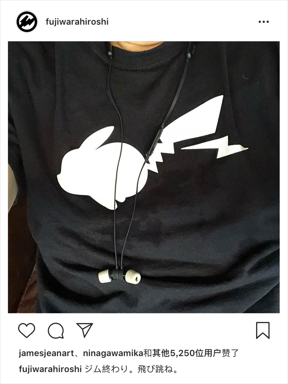 在前几日第 536 期的《墙外世界》中我们就给大家报道了藤原浩即将与 The Pokémon Company 公司开展合作的消息,今日藤原浩也在 Instagram 上曝出了联名更多的动态,就像你在图中的 T 恤上看到的,联名使用了 Pokémon 中的经典角色皮卡丘,并在尾巴处点缀了 fragment design 标志性的 “闪电” Logo ,两者搭配在一起非常合适。