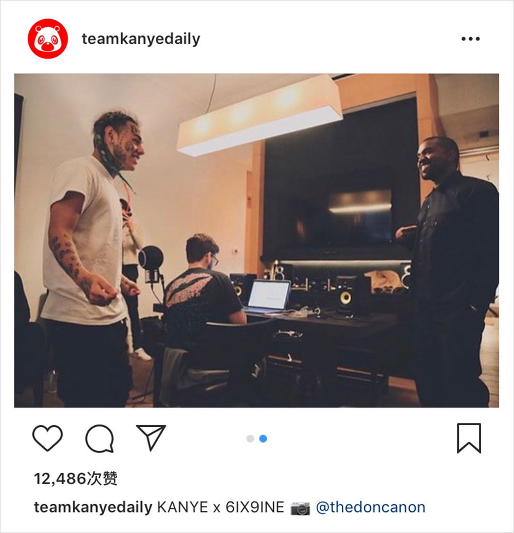 Kanye 近段时间似乎当起了 “领路人” 的角色,继上周和 Lil Pump 推出单曲《I Love It》之后,今日又曝出与另一 Hip-Hop 新秀 6ix9ine 在录音室制作单曲的照片。喜欢听 Hip-Hop 音乐的朋友都知道,6ix9ine 与 Lil Pump 虽然都很受欢迎,但音乐类型并不相符,所以且看 Kanye 能携手 6ix9ine 给我们带来什么好听的音乐吧。