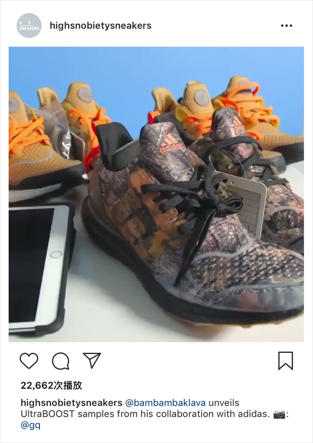 来自皇后区的说唱歌手 Action Bronson 今日主动曝光了以 Ultra Boost 为蓝本的联名鞋款。可以看到鞋款有三个款式,其中橙色鞋面版本以黑白中底区分,另一款则是以树林迷彩印花充斥鞋面,呈现一股秋季风格。
