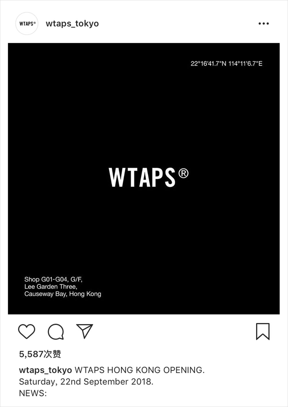 继两个月前 UNDEFEATED 于香港开设首家实体门店后,今日又一潮流品牌宣布入驻这个繁华都市,那就是日本品牌 WTAPS 。据官方报道,品牌在香港的首家实体店于 9 月 22 日开业,届时会发售香港限定商品,喜欢去香港购物的弄潮儿们别错过啦。