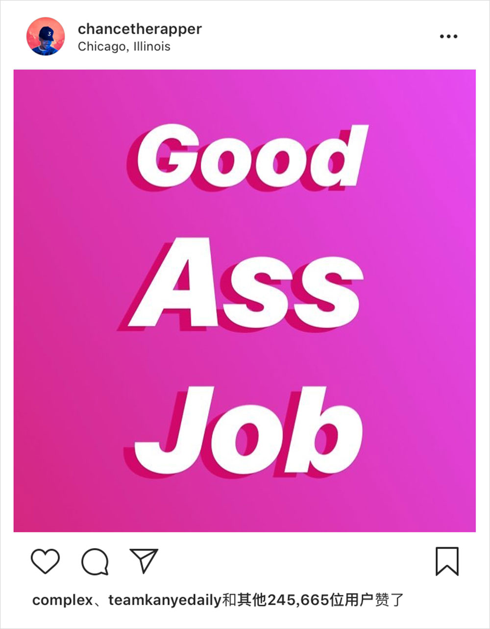 熟悉 Kanye 的粉丝们也许对图中的文字有些印象,因为 2003 年 Kanye 在接受 MTV 的采访时曾说道,继第三张专辑《Graduation》之后,会发布一张名为《Good Ass Job》的录音室专辑。幽默的名称让不少人认为 Kanye 这只是玩笑之举,毕竟当时《Graduation》都还没发布,后来大家也知道了,Kanye 第四张专辑是《808s & Heartbreak》。但近日 Chance The Rapper 就在晒出的视频中告示,Kanye 将参与新专辑的合作,而名字就是《Good Ass Job》!这算是履行迟到了 15 年的承诺吗?