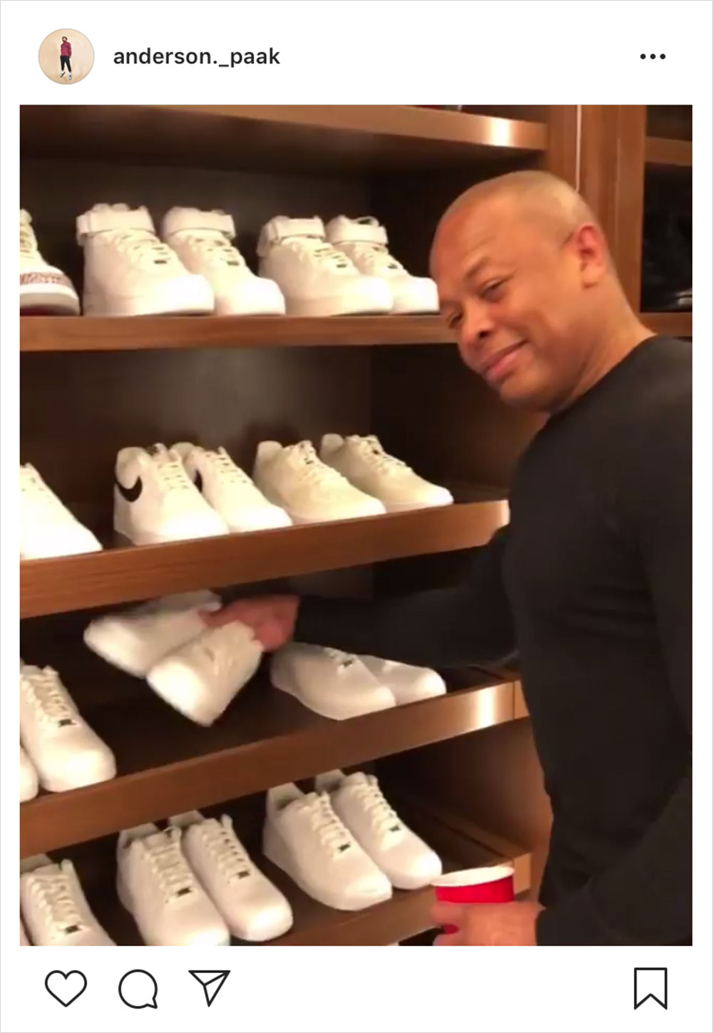大家都知道,大多数 Hip-Hop 艺人一般在时尚上的造诣都是不低的,甚至有些成为了时尚界的宠儿,但 Dr.Dre 可以说是行业中的一股清流了,@anderson._paak 今日就向我们透露了,Dr.Dre 一年到头只穿一双鞋—— Nike Air Force I ,虽说这双鞋是 80 年代街头文化中最为流行的鞋款,放到现在也是经典的存在,但 Dre 至今还保持着的 “热衷” 也能让不少鞋迷跪服了吧?