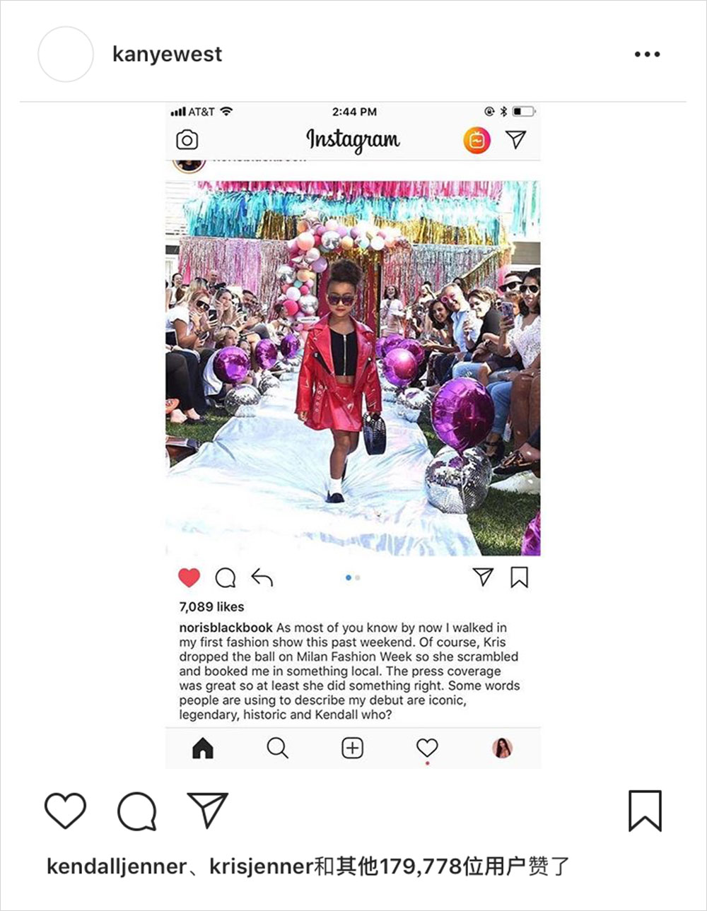 1. 来看看 Kanye 女儿的 T 台首秀