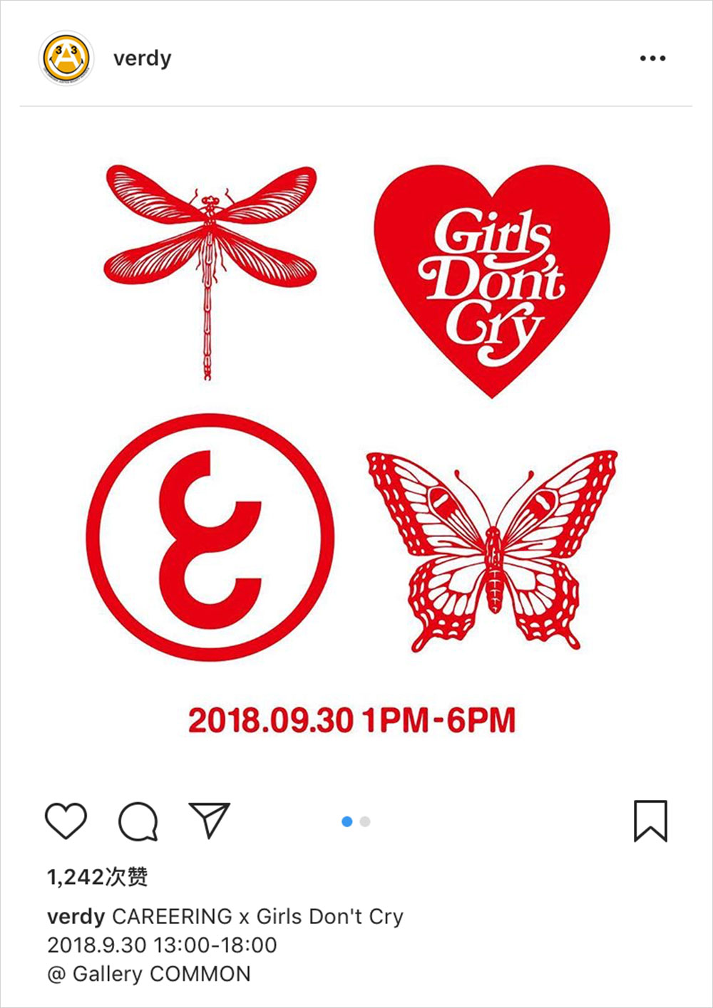 藤原浩日前曝光了配饰品牌 CAREERING 将与日本街头艺术家 Verdy 主理品牌 Girls Don’t Cry 的联名企划,在曝光的更多图中还得知了发布的日期—— 9 月 30 日,另外 “蜻蜓” 和 “蝴蝶” 的图案也许会是联名的主题,想多了解的朋友届时可登入线上商城购买。