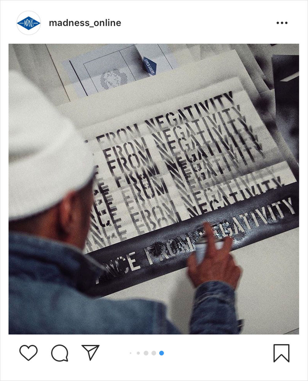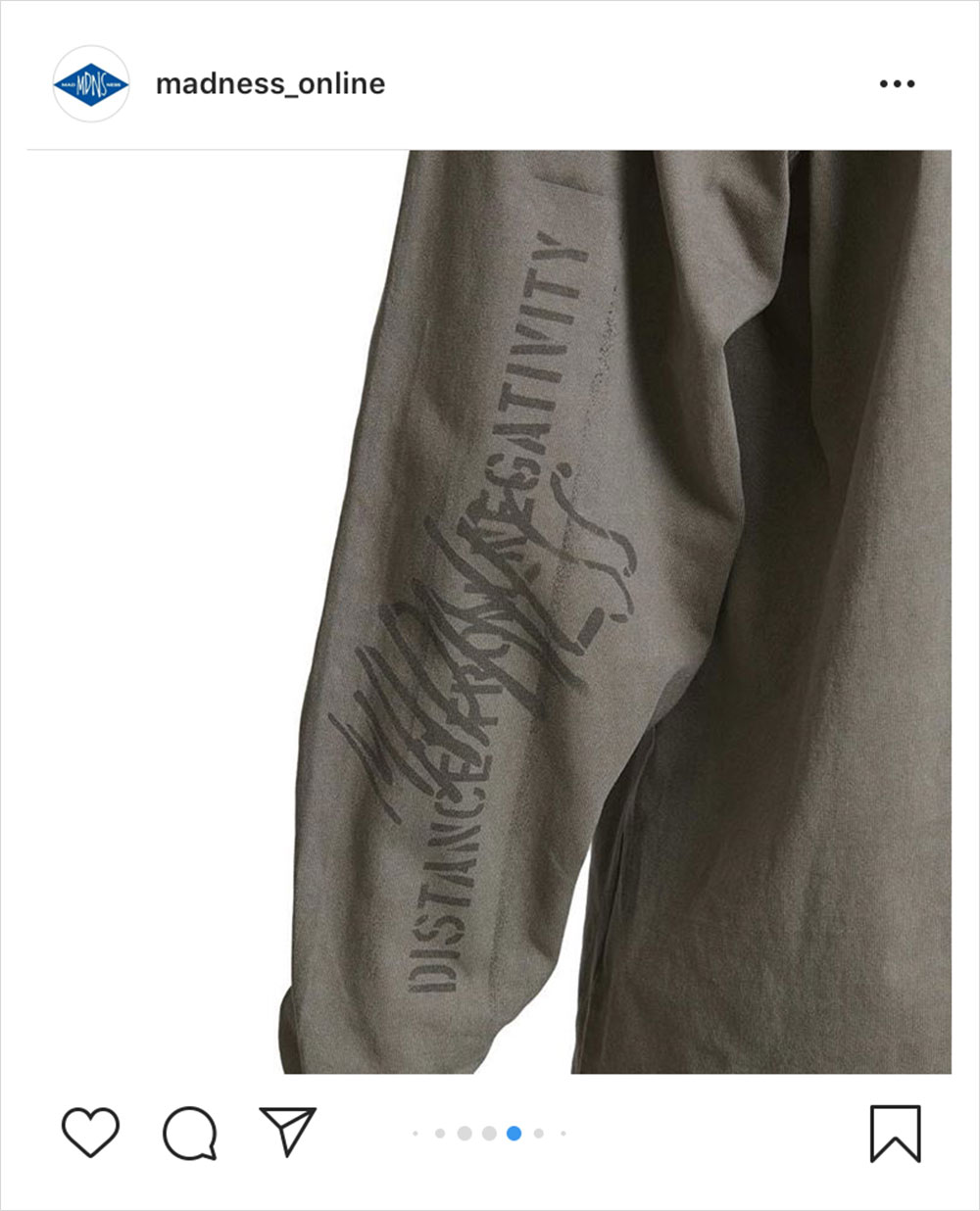 在本季 MADNESS 的最新系列 “SPECIAL DELIVERY” 中,有多款服饰上的喷绘印花是由品牌主理人余文乐亲手创作而成,可以看到先是由余文乐做好了印花模板,再点缀于系列中的多款产品上,本周六(10 月 13 日)发布的水洗破坏长 Tee 左右袖上就承载了余文乐亲手创作的印花,也是非常低调的展示了主理人的手工细节。