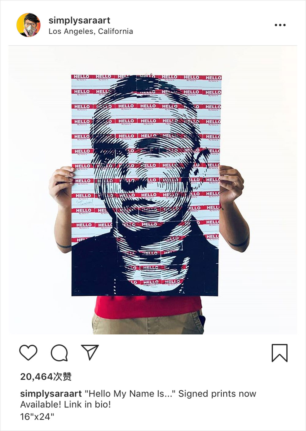 经常会有艺术家将一些 HipHop OG 的肖像用作自己的艺术素材,来自洛杉矶的女艺术家 Sara Sandova 近日就以 Eminem 的黑白剪影作为自己的题材,创作出图中的《Hello My Name Is … Eminem Print》。她的绘画手法究竟有多独特呢?这位艺术家先是用油墨笔在一卷贴纸上从重到轻勾勒出不同的笔触线条,然后在逐一贴合在一起,最终呈现图中的 Eminem 黑白肖像,此手法在笔者这种外行人看来堪称是 “神奇” 之作,喜欢的朋友可在线上商场订购。