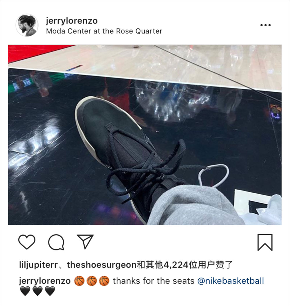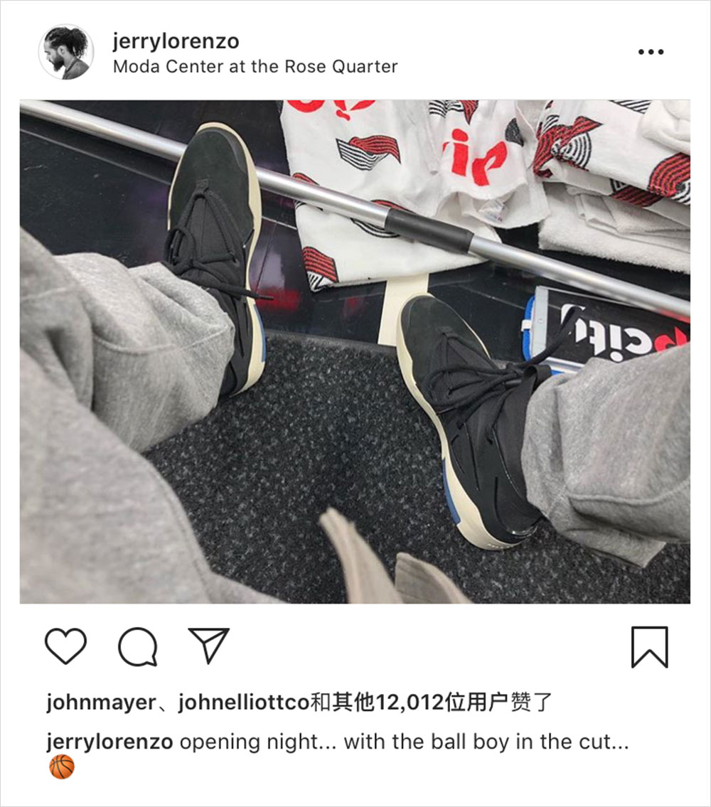 Fear Of God x Nike 自曝光之后暂时被网上命名为 “Air Fear Of God 1” ,不久前更有情报账号曝出鞋款将有两款配色于 12 月 4 日率先发售,分别是 “Light Bone/Black” 和 “Black/Black” 。前者我们已经报道过,在今日,Jerry Lorenzo 也终于首次亮相了联名的新配色,黑色的鞋面配合米白色的中底,依然秉承品牌低调的风格,在发售日之前,喜欢的朋友得开始选择啦。