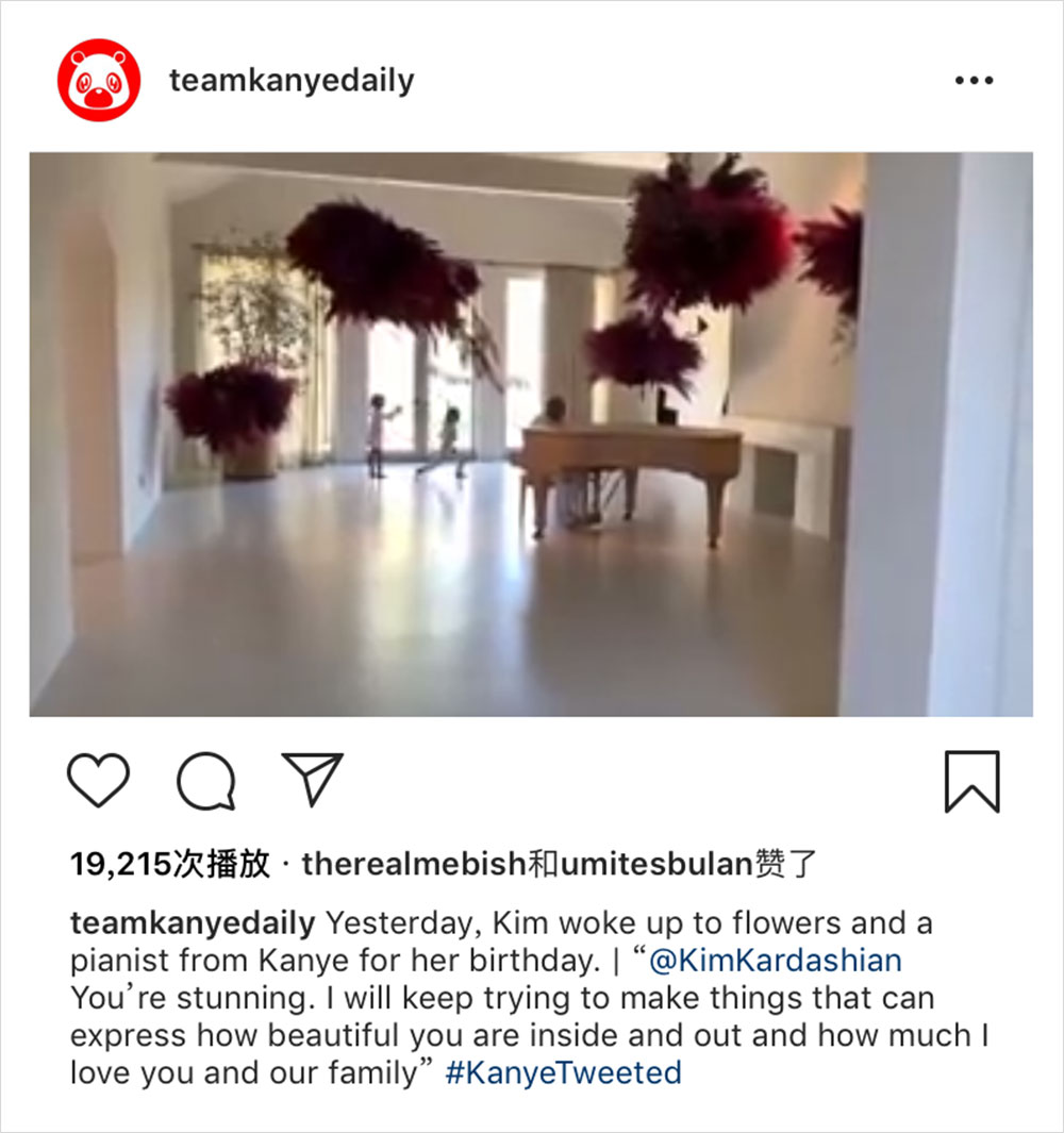 3. “宠妻狂魔” 再次上线,Kanye 弹琴为妻子庆生