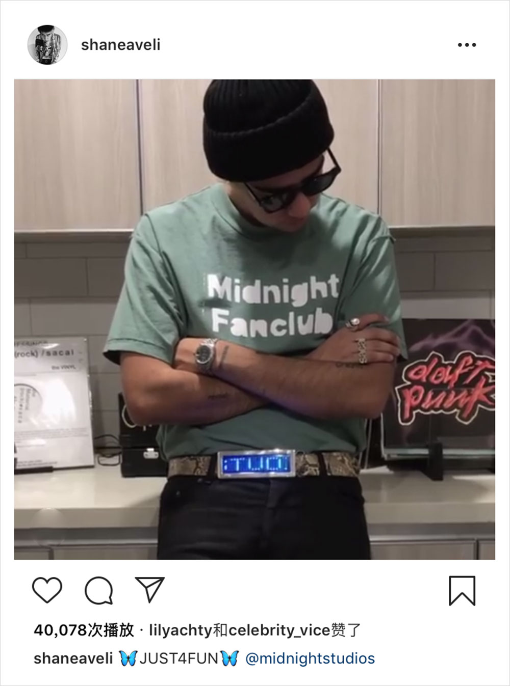 Shane Gonzales 作为 Midnight Studio 主理人和 AWGE 的成员之一,似乎总是有挥发不完的创意,这不,今日他就在 Instagram 上晒出了一款别样的腰带,就像你看到的,腰带正中安了一块显示屏显示着 Midnight Studio 的字样,戴着这个腰带,帅气的同时也等于是在给品牌打移动广告了吧…