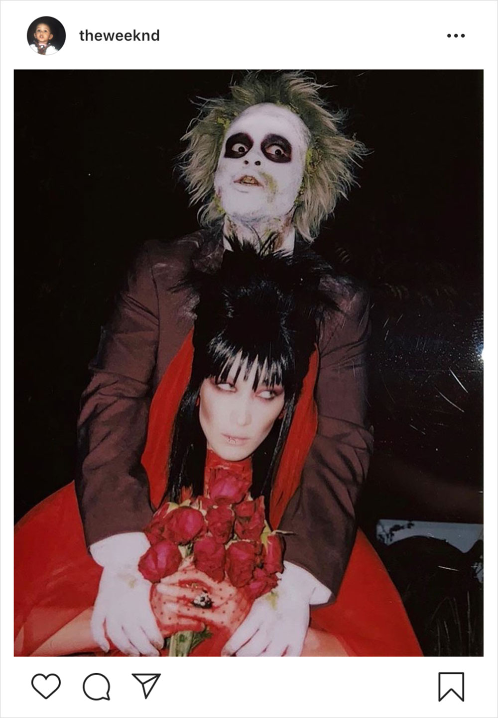 The Weeknd 和 Bella Hadid 则是化身《阴间大法师》里的主角夫妻