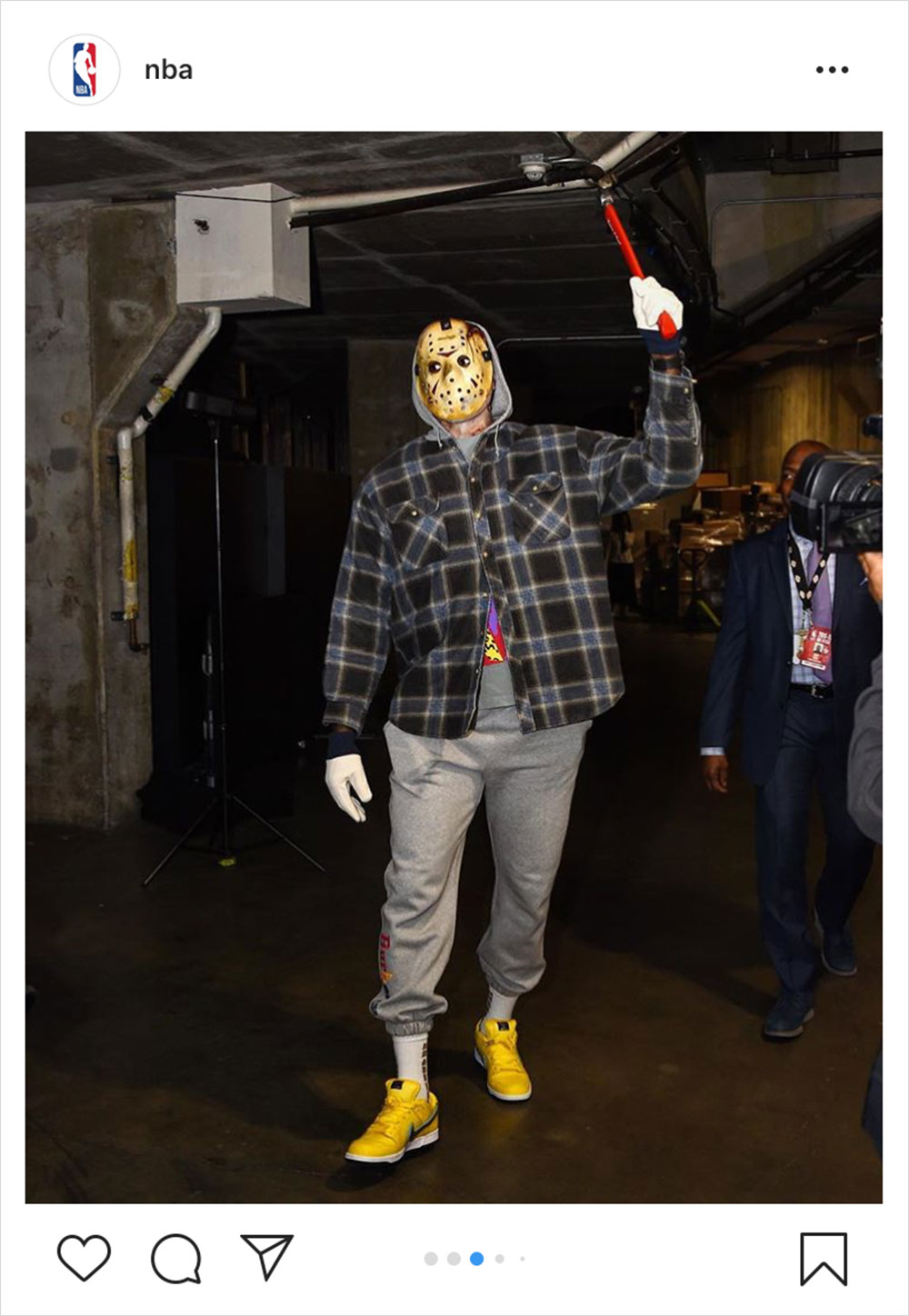 大家期待已久的万圣节已经到来,想必此刻你们都已经给自己打扮成了能吓到人的 “鬼怪” 造型了吧。但其实,在万圣节前一天才是这个节日最热闹的时刻,这不,Instagram 上的名人们就在节日前夕装扮好了造型,非常吓人的也有,模仿另一些名人的也有,搞笑为主的也有,可以说是五花八门… 为此,笔者特地收集了一些较为有趣的供大家欣赏,当然,也可以成为你的装扮灵感,一起看看吧。(上图为詹姆斯模仿《十三号星期五》里的杰森·沃赫斯)