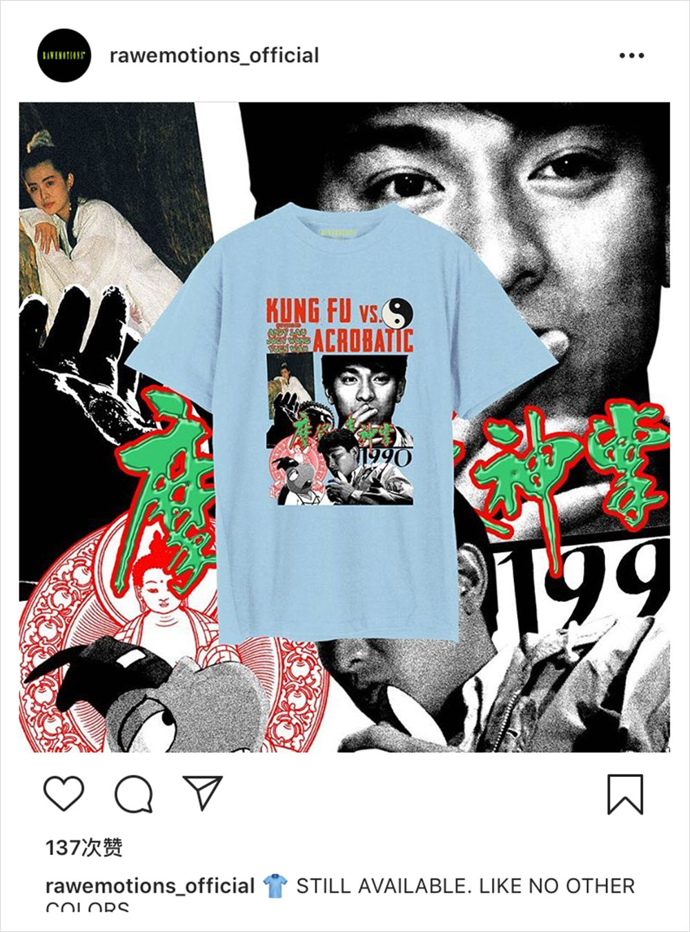 不久前 Supreme 发布了与著名香港导演吴宇森执导电影《喋血双雄》的联名系列,大家也都一定见过了。而港片这类经典元素出现在美国品牌身上也无疑是一大卖点,但大家一定不知道,中国香港品牌 Raw Emotions 创立至今,所有单品都是以港片元素做设计主导的,其中使用到的电影的多个场景、台词、角色都被呈现在服饰上了,如果你不舍得购买 Supreme 新联名但又喜欢这种港产片情怀的话,可以留意一下。