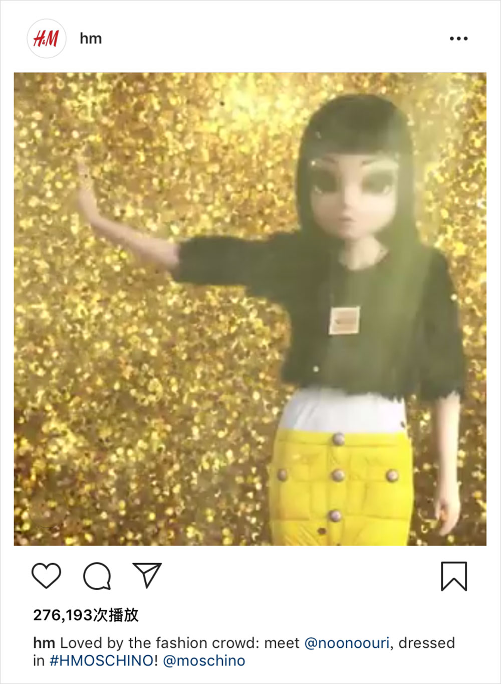 如果这几天你有逛街的话,那路过 H&M 时也许会有看见他们和 MOSCHINO 对联名系列,无论是实物还是网络上的图片报道,相信大家都感受到了 Jeremy Scott 的颠覆设计,甚至就连宣传大片…都是那么颠覆。此番,该系列便找来了虚拟人物 NooNoouri 进行拍摄,但别小看这个二次元角色,NooNoouri 可是当下最红的时尚 Icon ,今年 2 月首次亮相之后,就已经被各大时尚品牌 “宠” 了个遍,这回轮到H&M 和 MOSCHINO,对此还是值得期待一下吧。