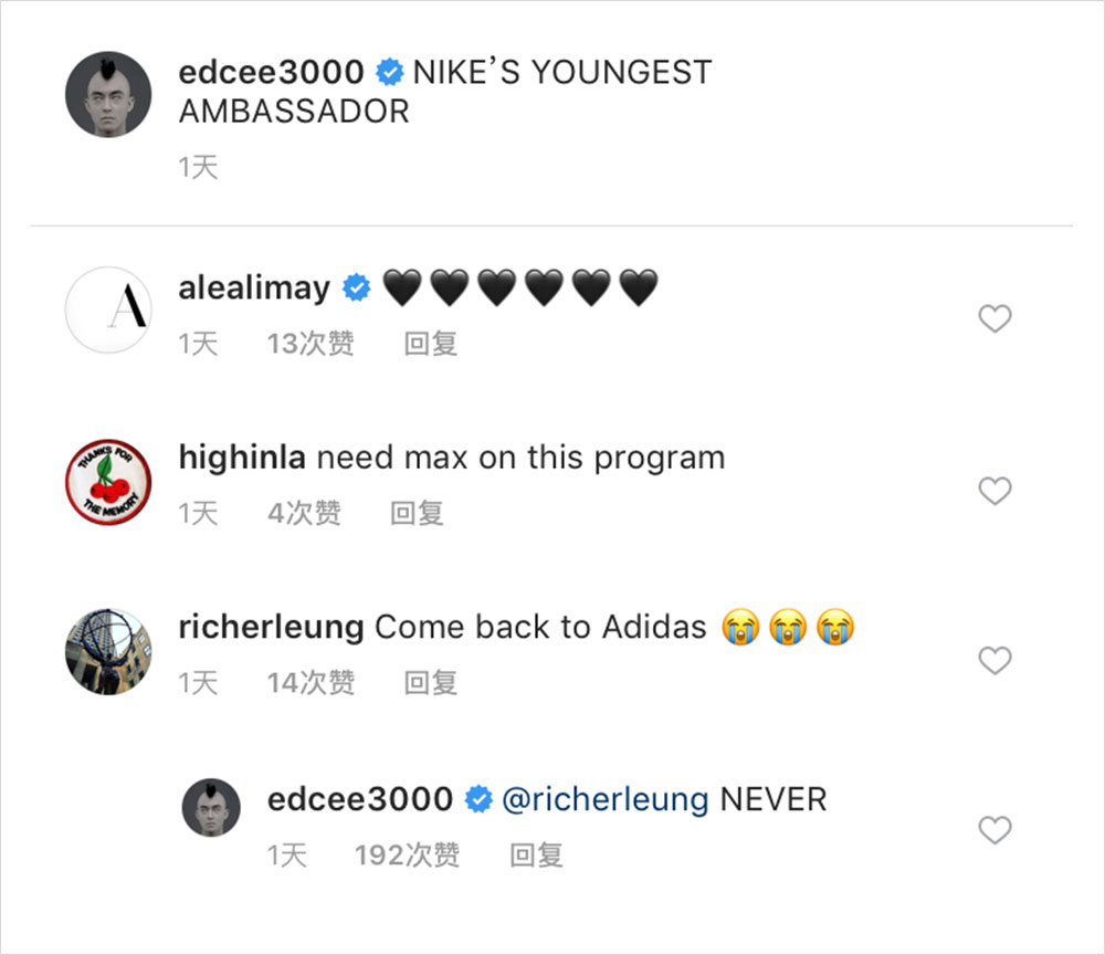 在昨天的《墙外世界》中,我们报道了陈冠希晒出了其女 Alaia 上脚 Virgil Abloh x NikeLab Air Force 1 的动态,十分令人羡慕。但值得注意的是,在这篇帖子的评论中,当有人提及希望回归 adidas 时,陈冠希则是直面回复了 “绝不” … 要知道,早前 CLOT 与 adidas 也推出过不少联名款,虽说近段时间品牌与 Nike 的联系更多一些,但就此番回应而言,恐怕我们真的再也看不到 CLOT 与 adidas 的联名了吧…