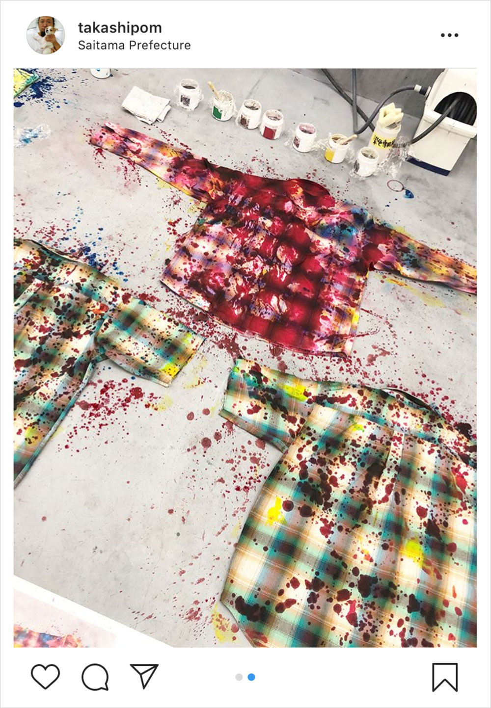 3. 村上隆亲自给自己的衣服加了 “泼墨” 和 “做旧”