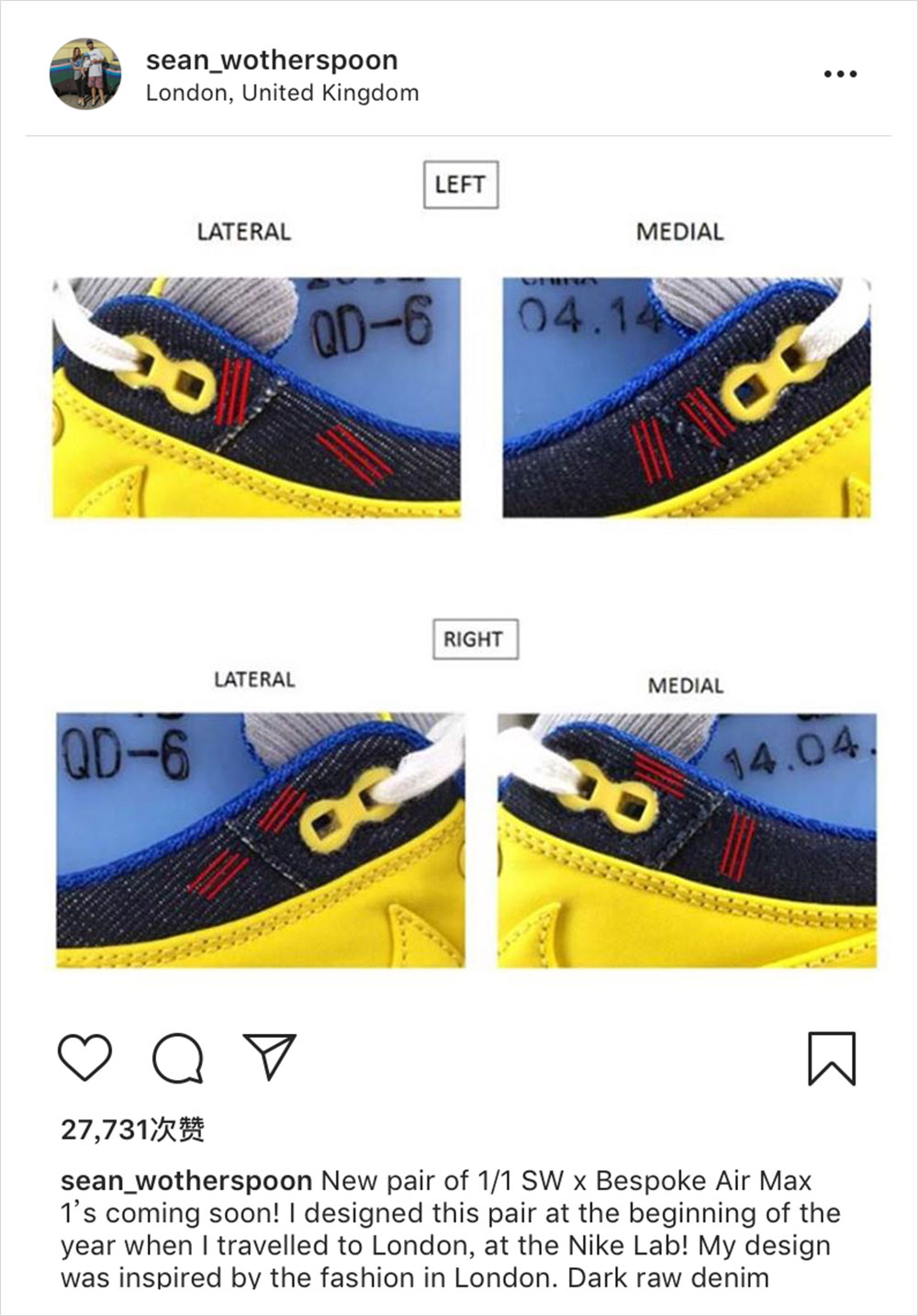 与 Nike 合作的 Air Max 1/97 让 Sean Wotherspoon 在球鞋领域巩固了自己的地位,功成名就之后要做的就是 Keep It ,所以 Sean 今日也告示了新鞋款 SW x Bespoke(球鞋定制单位)Air Max 1 的到来。据悉新的鞋款是 Sean 在年初就设计好的,因为灵感来自于伦敦时装周,所以在图中你可以看到鞋款有牛仔布料和防水布料的材质,当然也少不了 Sean 最喜欢的灯芯绒,这一材质用在了鞋舌这一部分。
