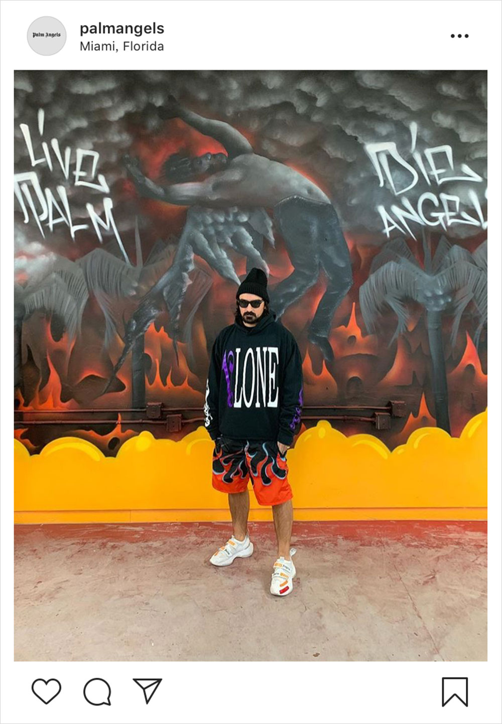 自我们报道了 Palm Angels x VLONE 联名消息曝光后,双方也随后正式公布了合作并晒出联名设计,Palm Angels 标志性的火焰元素贯穿整个联名。之前还只是概念图的短裤单品也有实物亮相,街头风十足,相信很快就能购买。