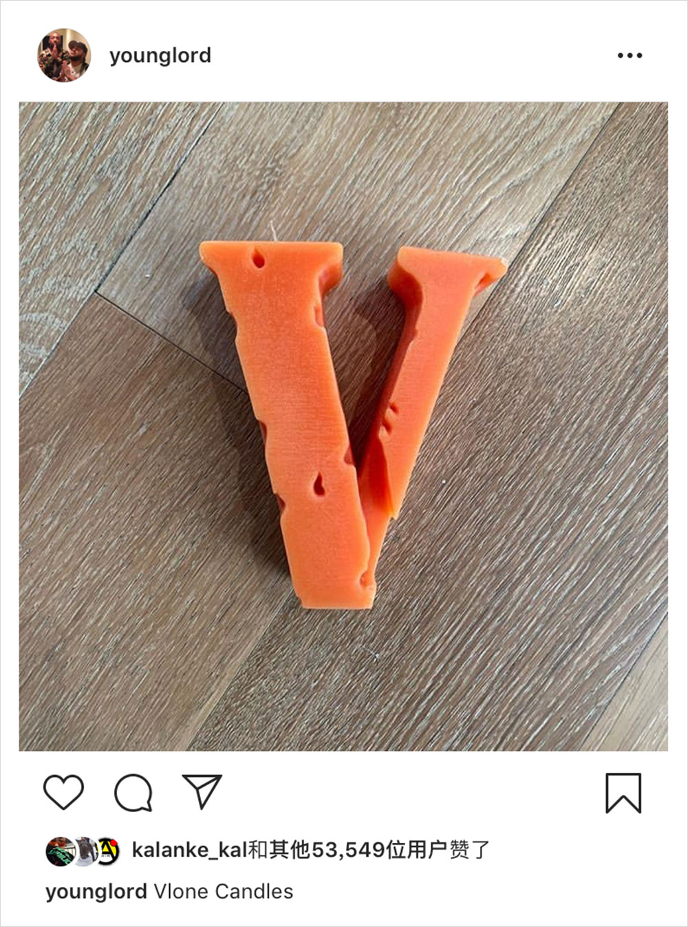 VLONE 主理人 A$AP Bari 今日曝出了一款家居单品,就像图中所示,是一款蜡烛,Logo 上的 “破损” 细节都很细致的还原到了单品上,可以说是潮人生日上的必备,喜欢的话就请大家保持期待啦。