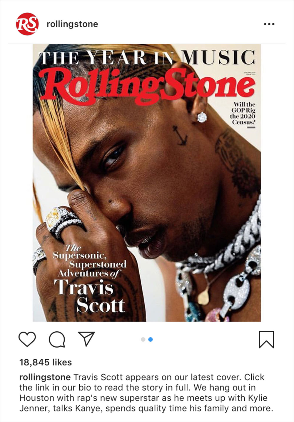 人气说唱歌手 Travis Scott 近日登上《滚石》最新刊面,在拍摄的造型中,Travis Scott 罕见地拆下了自己的脏辫,以新 “发型” 亮相杂志封面。别说,有了 “刘海” 的 Travis Scott 看着还真不适应… 无论如何,此番《滚石》选择 Travis Scott 作为封面人物,更奠定了其在流行和音乐方面的 “新巨星” 地位,祝贺。