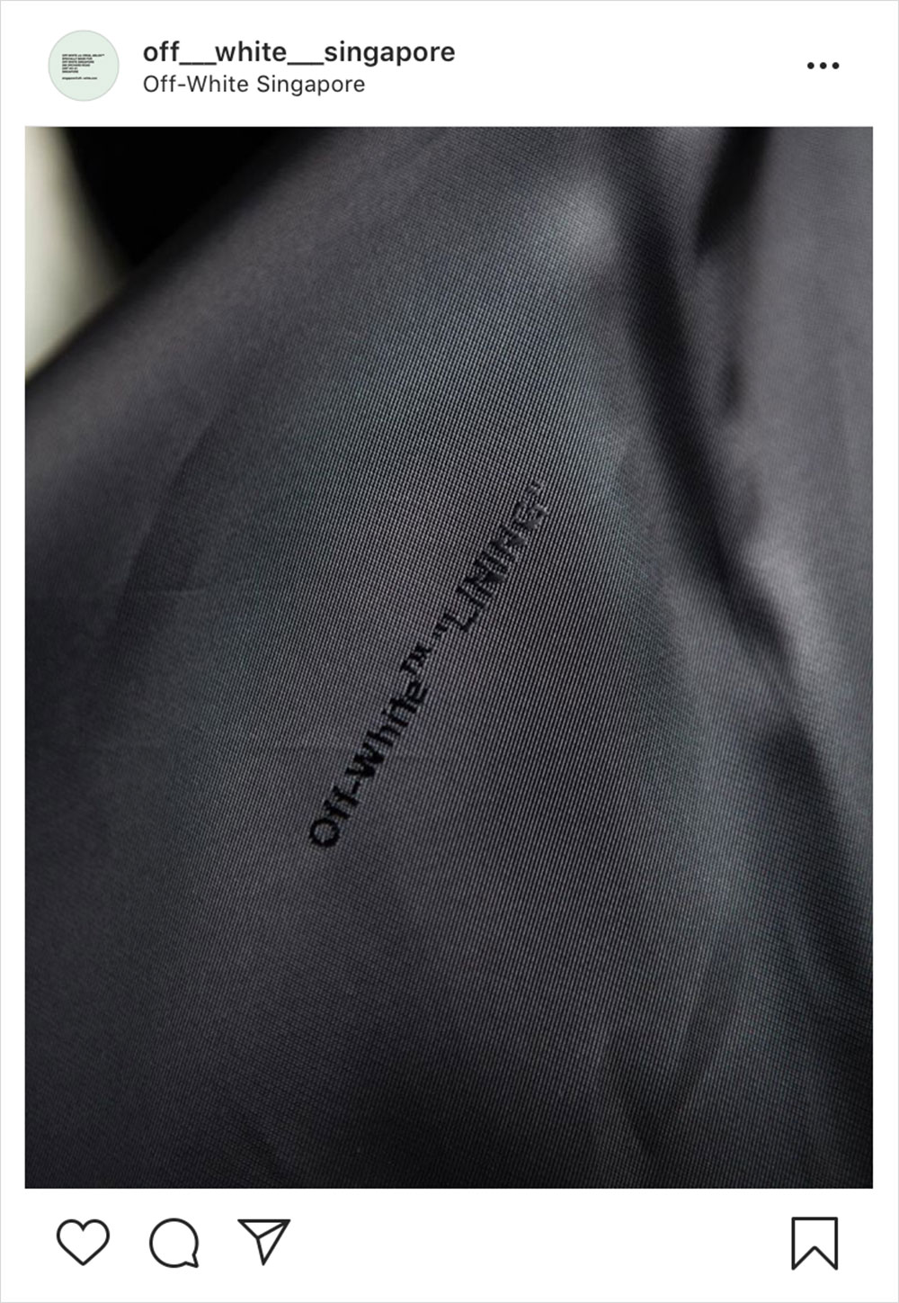 Off-White™ 虽然至今打造了许多联名,但如果能和中国李宁进行一波合作,各位怎么看?日前账号 @off___white___singapore 发出的一张单品图片就带有 “LINING” 的字样,这着实把网友们吓了一跳:难道以后连李宁都要买不起了…?据附文所述这仅是一款飞行服夹克,并没有任何联名表示。熟悉 Off-White™ 的朋友都知道,引号标签阐述一直都是品牌的设计语言,“LINING” 不单是拼音,也可能是品牌想表达英文 “内衬、衬料” 的意思,所以大家也许是白激动了…