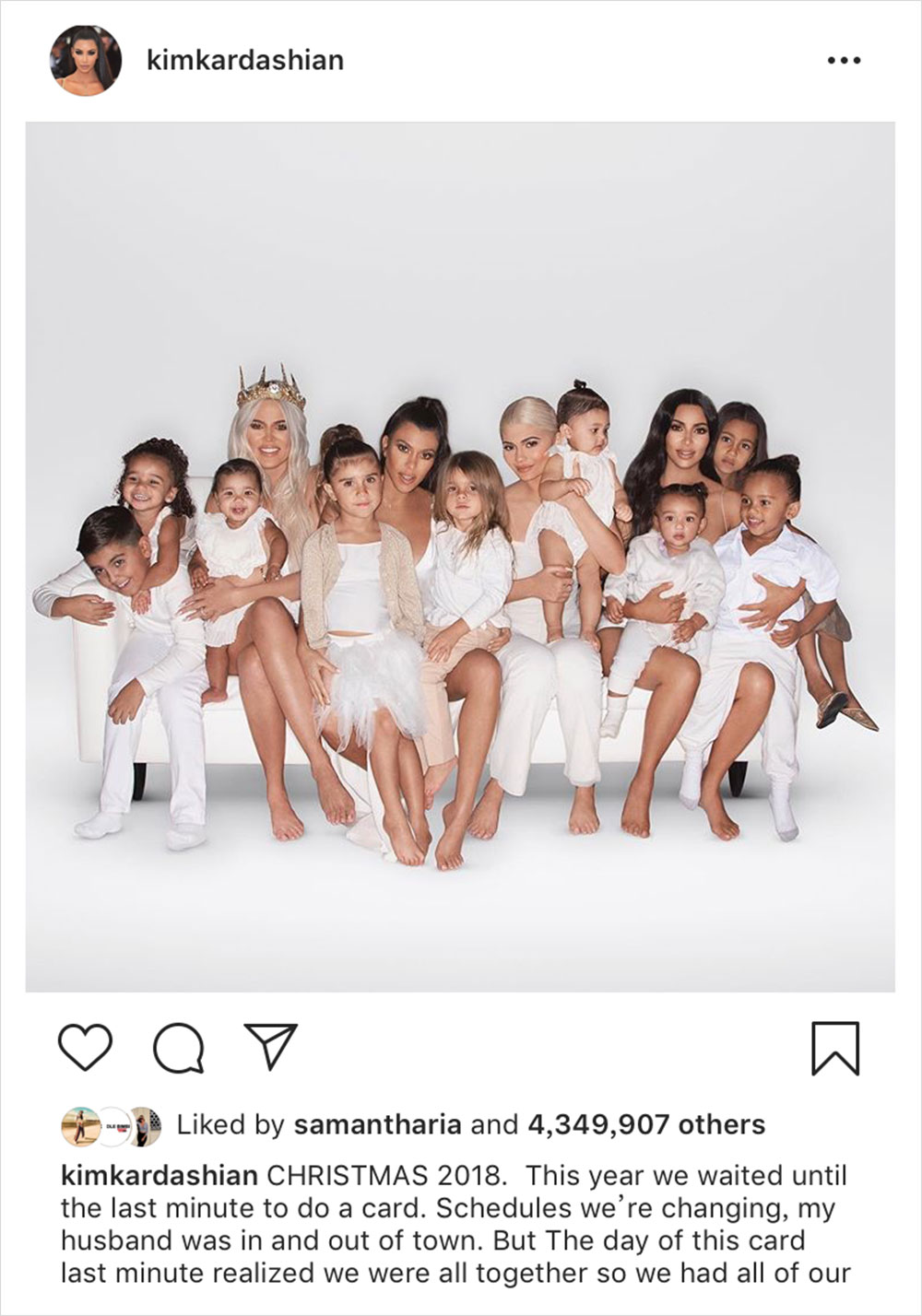 圣诞节于西方国家来说就相当于中国的春节,一家团圆是最重要的过节仪式。卡戴珊家族也不例外,今日,卡戴珊五女中已育有儿女的母亲们也在新年之际拍了张大合照祝大家圣诞快乐,非常温馨。