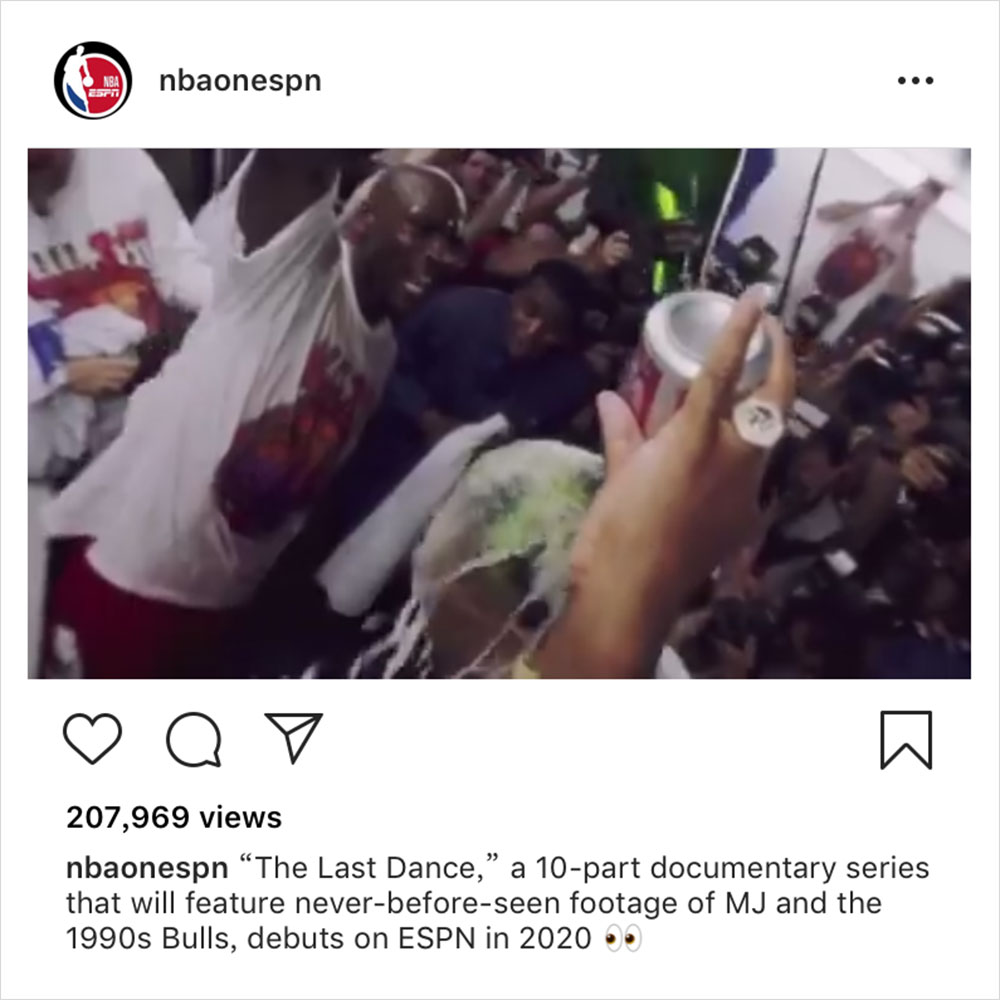 ESPN 与 Netflix 联手为 Michael Jordan 打造的全新纪录片现已发布首支预告,该片名为《The Last Dance》,从视频开头 “ 1998年,Jordan 和芝加哥公牛队贏得了第 6 座,也是他生涯最后 1 座 NBA 冠军” 这句话可以看出,背景聚焦于 1997-1998 年,公牛王朝的最后一年,也是 Jordan 取得个人第 6 枚总冠军戒指的一个赛季,借此巩固了他 “篮球之神” 的封号。此外,纪录片素材取于长达 500 多小时从未公开的画面镜头,绝对大饱各位眼福,据悉该片将于 2020 年上映,还有一年多的时间,看完预告片后大家就耐心等待吧。