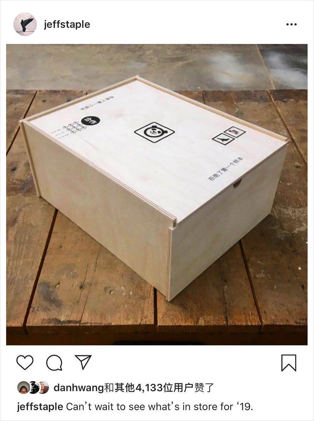 1 月 6 日就即将迎来 Staple Design x Nike SB Dunk Low “Panda Pigeon” 的正式发售了,不久前更有消息释出联名还涵盖了长袖 T-Shirt、卫衣等成衣单品。联名发布之际,今日主理人 Jeff Staple 晒出了鞋款最后的样貌——鞋盒,图中的纯木质鞋盒疑似是特别版专供,或许也会在 1 月 6 日发布,大家就敬请期待吧。