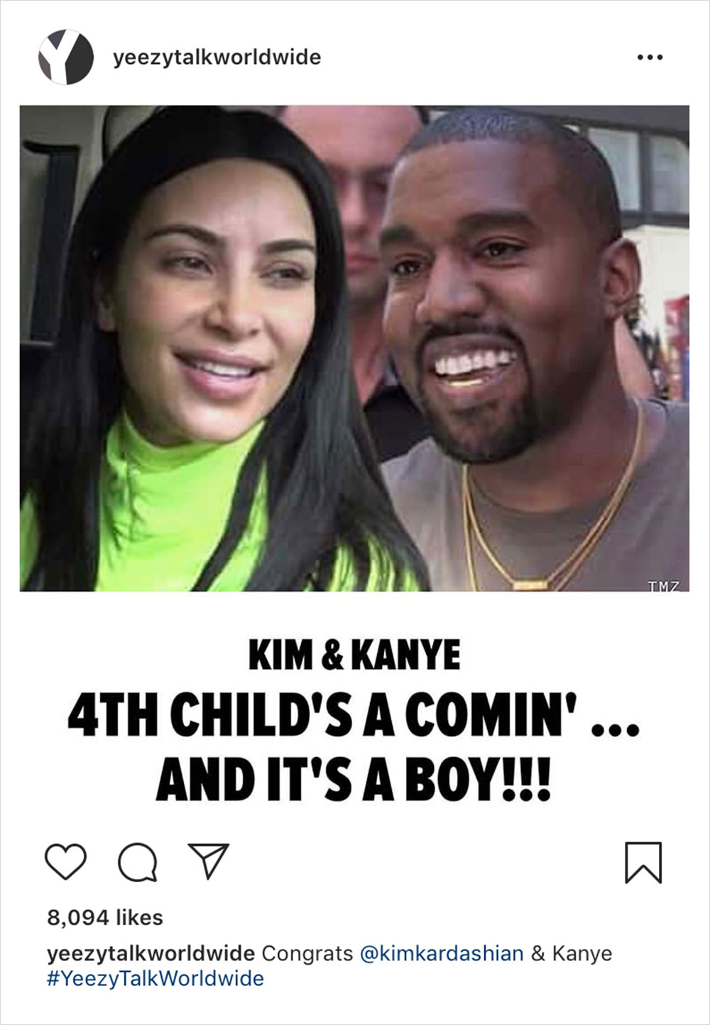 Kanye West 自和 Kim Kardashian 组建家庭以来,共育有 3 个孩子,分别是 5 岁的 North 、3 岁的 Saint 以及 11 个月大的 Chicago 。日前据《People》报道,这对夫妇准备给家里再添一子,并且和 Chicago 一样,采用人工代孕的方式。据悉,在 Chicago 刚出生没几天时两人就有这样的想法了。