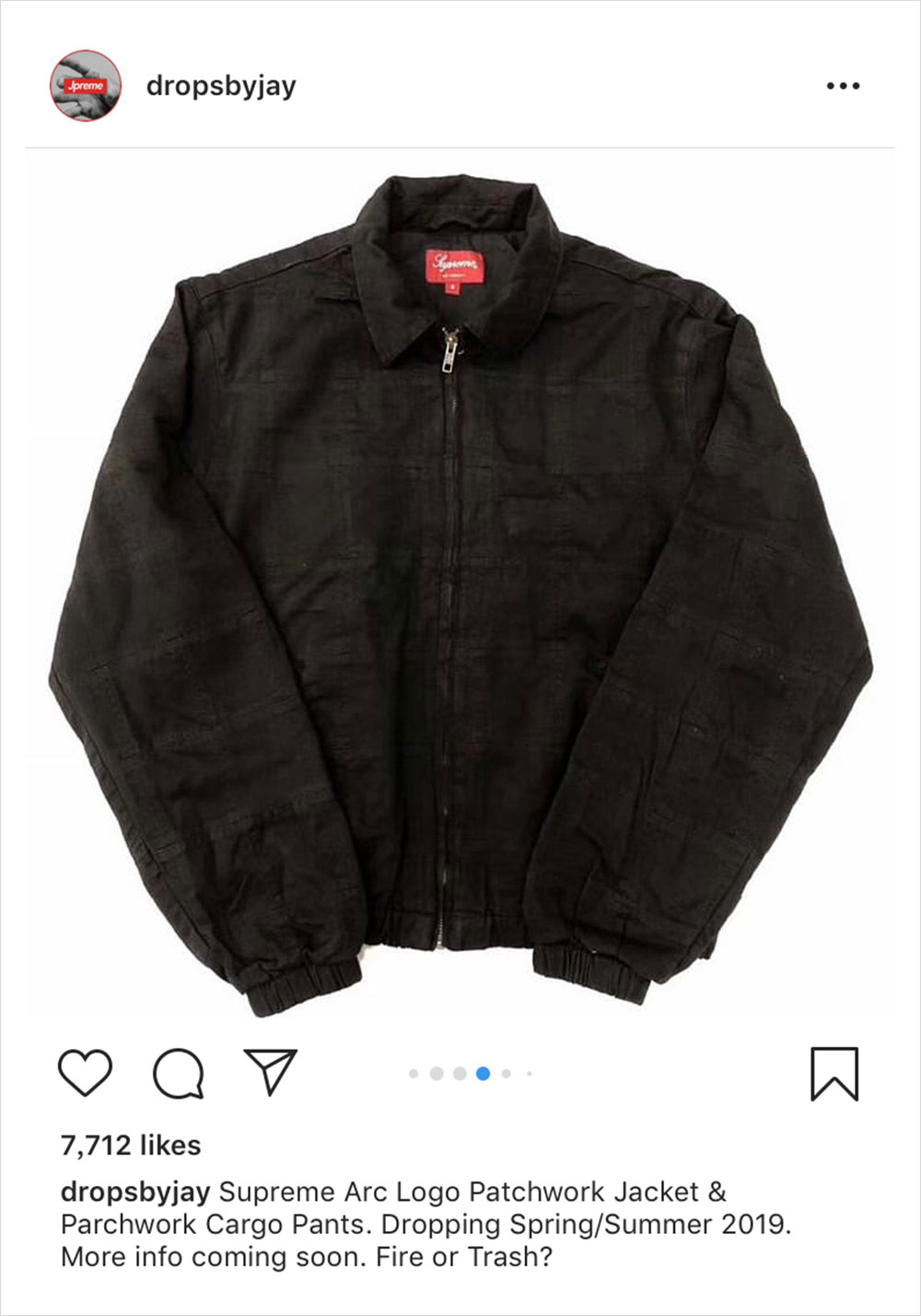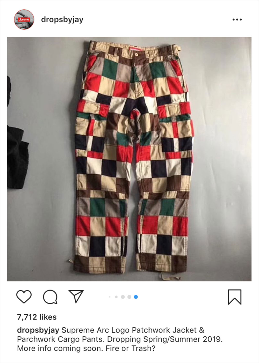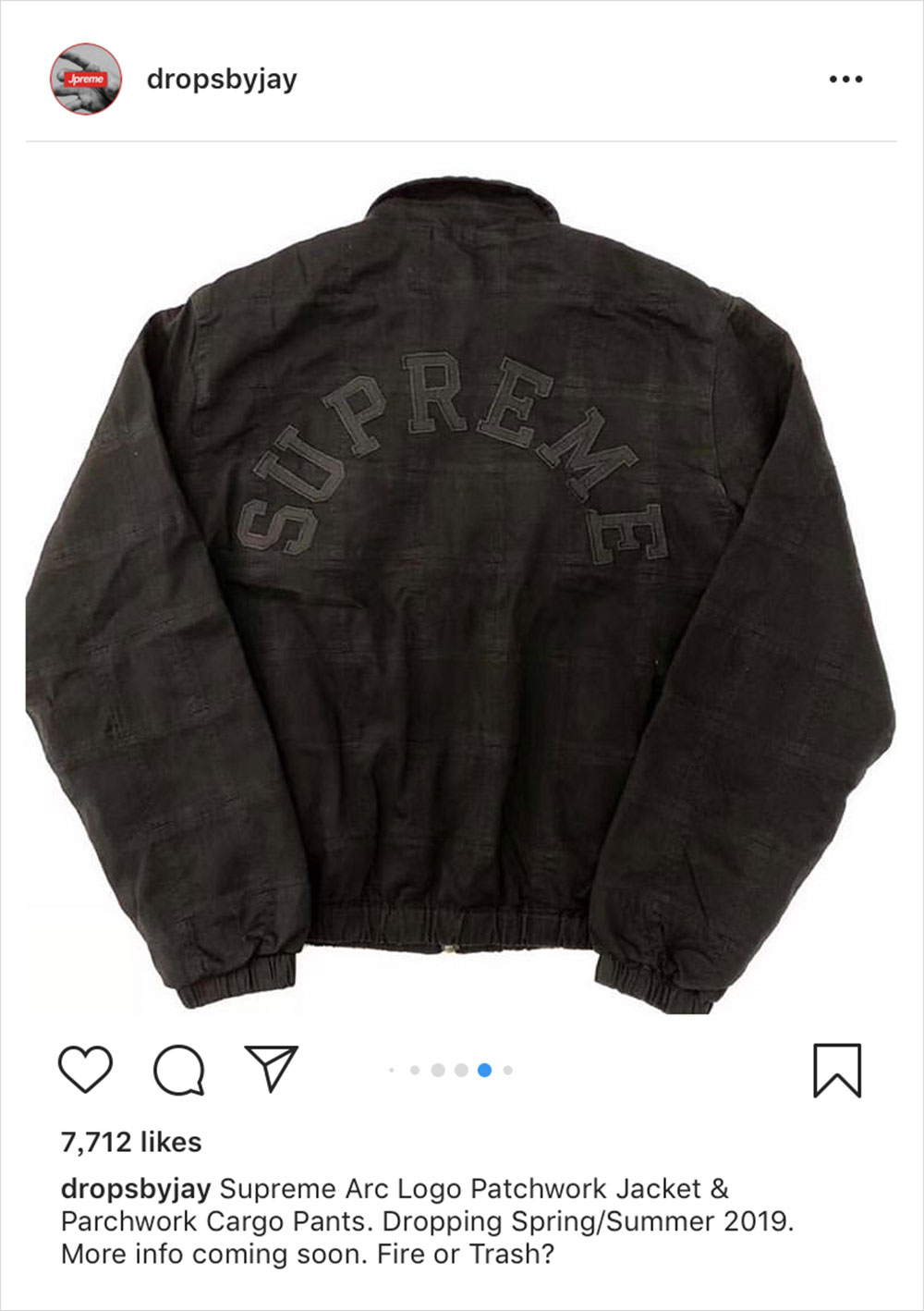 虽然目前离 Supreme 2019 春夏系列的发布还有一个多月,但外媒 @dropsbyjay 今日提前给我们曝光了该系列的单品图片。如图所示,春夏系列包含了一款格子拼接套装,Supreme 字样以弧形 Logo 呈现于夹克背面,风格尽显复古。除了单品,该账号同时还曝出了发布计划,正式预告是 2 月 4 日,而第一波的发售是同月 14 日,想及时了解就持续关注我们的报道吧。