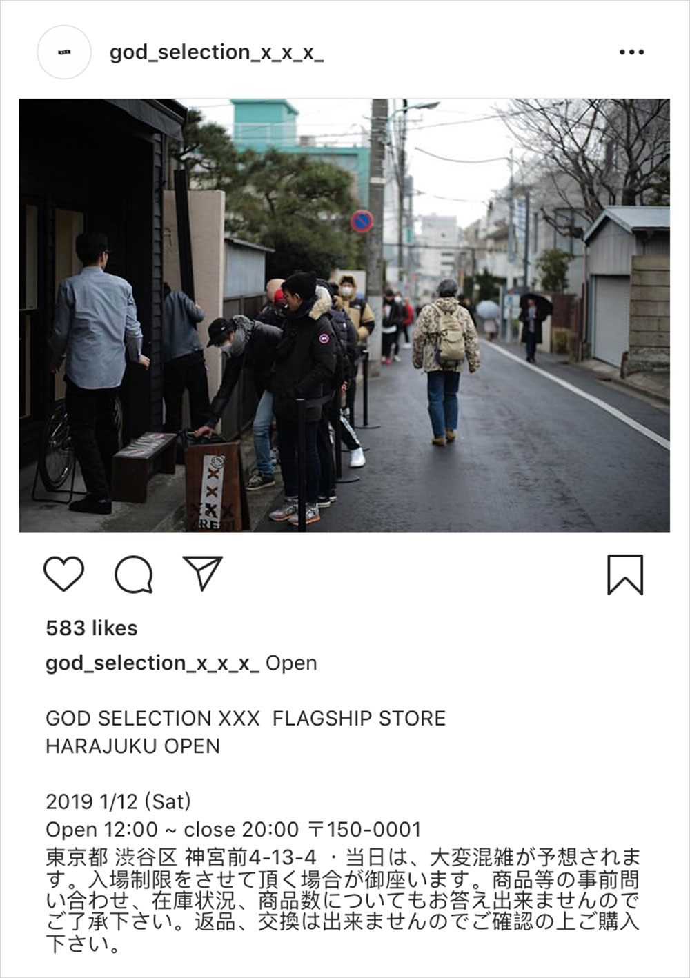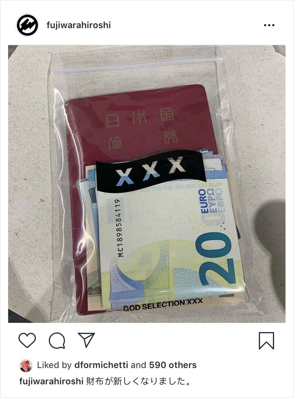 潮流教父除了在 Instagram 上分享生活常态之外,偶尔也会给大家安利一些品牌,而在他的最新动态中,就带大家认识了由年轻设计师宮崎泰成创立的品牌 GOD SELECTION XXX 。看到这个名字,可能有些人会感到陌生,但在日本,每当品牌有新品发售,都会引起排队人潮。